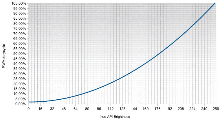 Hier die Werte - Hue "bri" parameter und effektiver Duty-cycle in %: