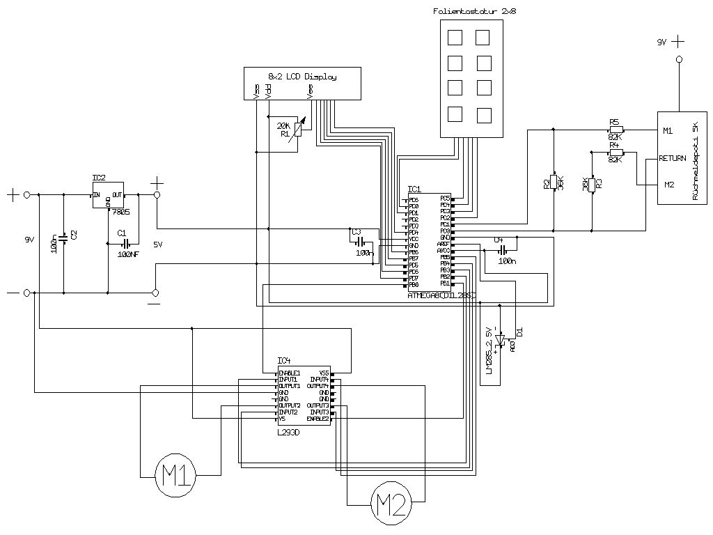 Da ich ein unstabilisiertes 9V-Netzteil benutze, habe ich C1 und C2 entsprechend angepasst.