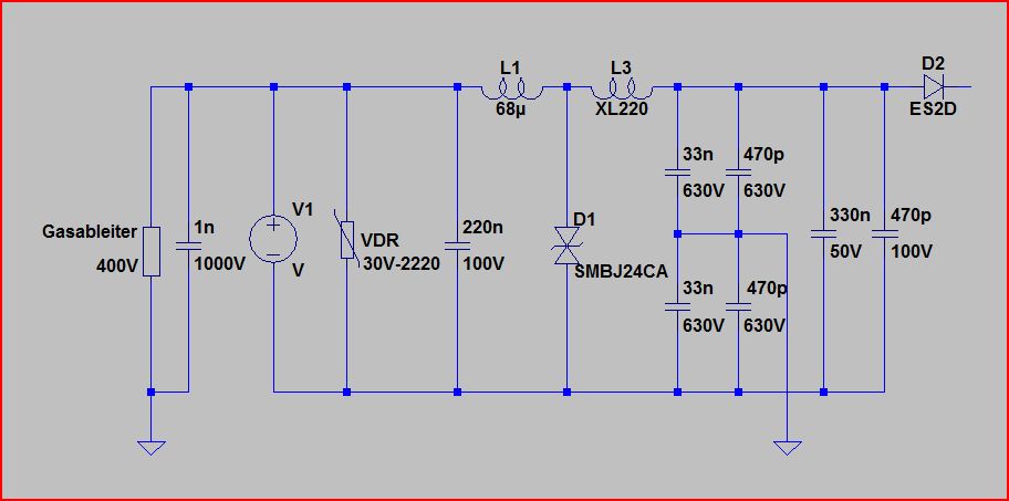 Werner B schrieb: > Beim EMV-Test im Labor ist mein Gerät durchgefallen. Und wie hat sich das Durchfallen genau geäußert? Ist das Gerät durchgeschmort oder was ist genau passiert? Welche Komponenten sind jetzt defekt? > Beim Burst-Test polarität + schafft meine Schaltung locker 3kV, > aber sobalt ich die Polarität auf minus umstelle ist bei 1,8kV schluss. Wurde der Test mit + zuerst gemacht und danach der mit - oder wurde + und - immer mit steigender Spannung abgewechselt? Es könnte sein daß Dein Gerät durch die vorigen Tests vorgeschädigt wurde und dann einfach irgendwann ausgestiegen ist. Und das war halt zufällig bei -1,8KV. Deinen LTSpice-Schaltplan gibt nicht her wo da nun Dein Gerät genau angeschlossen sein soll, das muss man erraten. Vielleicht wird das aus Deinem echten Schaltplan deutlicher?