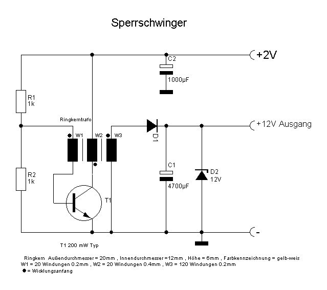 Bei der Sperrschwinger Schaltung kann e shilfreich sein, statt R1 und R2 ein Trimmpoti zu benutzen, damit man den Arbeitspunkt (für besten Wirkungsgrad und sicheres Anschwingen) einstellen kann.