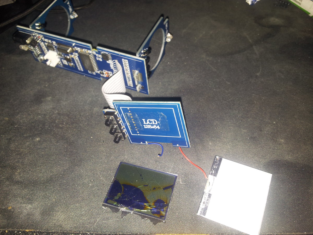Wegstaben Verbuchsler schrieb: > so was? > > Youtube-Video "Chronograph Elite Force für Softairwaffen" Ja genau Wegstaben Verbuchsler schrieb: > Interessant sind beim Display die Anzahl der Bildpunkte, und die > mechanische Größe des Displays. Das Display hat eine Auflösung von 128x64 Es ist 3,3 cm lang, 2,5 cm breit. Wobei mir egal is ob es noch mal in seine Halterung passt oder nicht. Stephan K. schrieb: > Wievel Joule braucht es denn so um ein Display zu zerschießen? 0,44 Joule war die letzte Anzeige. Passiert ist es, als man den Chrono weg genommen hat und der Schütze noch mal abgedrückt hat. Die Kugeln sind dann nicht durch den Kanal geflogen sondern über Blende und Display. Stephan K. schrieb: > Welche Typenbezeichnung hat das Display? Das ist unbekannt. An dem Display selbst steht nichts, auf dessen Befestigung ist ein Druck mit der Auflösung von 128x64. In der Bedienungsanleitung findet sich nichts dazu und auch Distributor und Hersteller wollen oder können keine Ausage über das Display treffen. Kann ich theoretisch nicht einfach ein Grafikdisplay mit 11 Pins und einer Auflösung mit 128x64 verbauen? Ich hab noch ein Bild angehängt von der ganzen Einheit (Akku ist nicht drauf)
