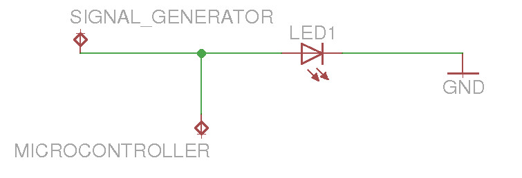 Wenn "Signal Generator" (und zusätzlich der "mikrocontroller") den "Input" darstellt, wo ist denn dann der "Output" der ganzen Sache? Soll da nur die LED angesteuert werden, oder auch noch was anderes? Warum ist das "wichtig", daß die Verbindung nicht "unterbrochen" werden darf? Und was heißt "unterbrochen" genau?