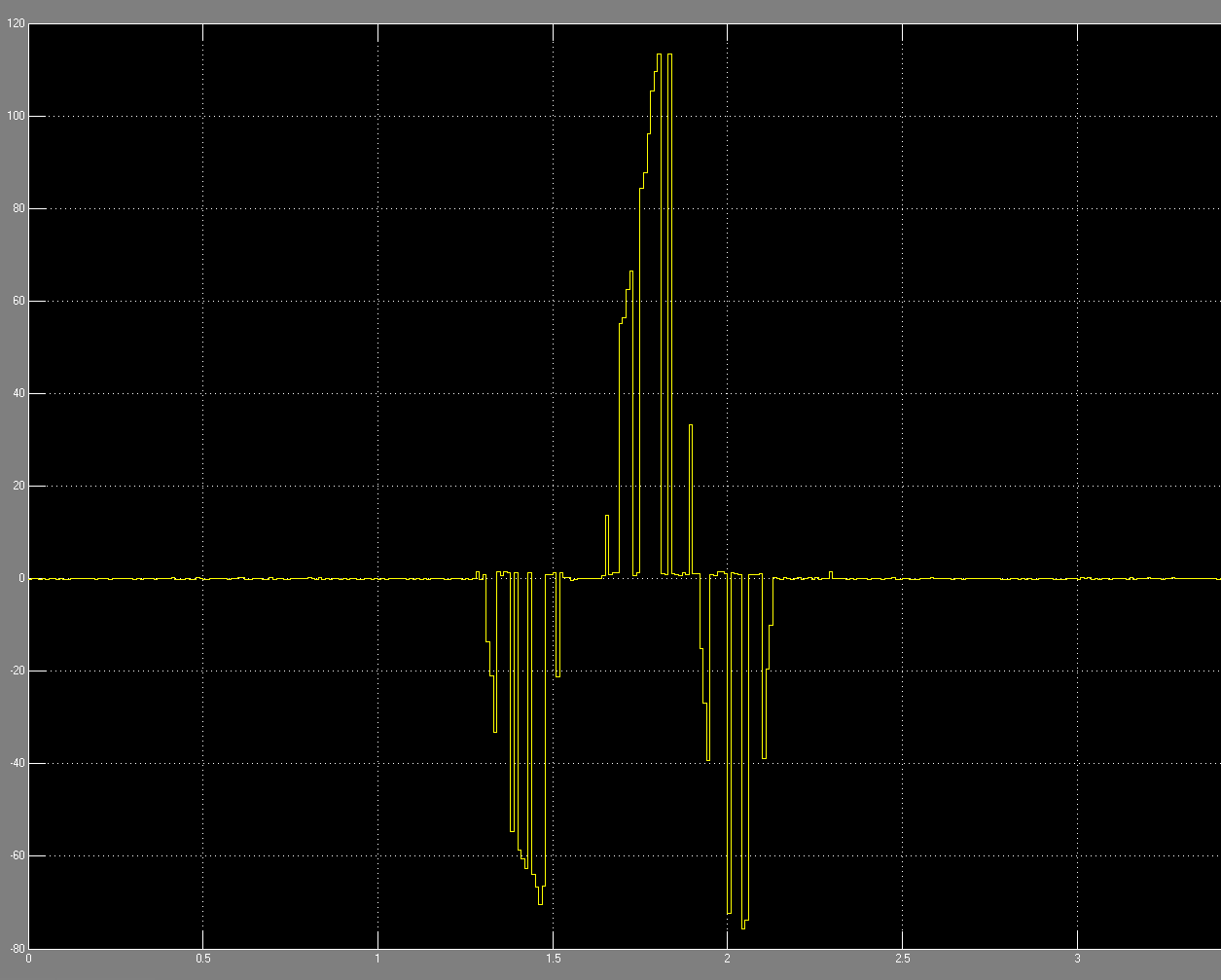 Hallo, ich mache gerade eine Auswertung meines MPU6050 in Simulink (Daten werden per RS232 gesendet). Dabei bekomme ich für die Winkelgeschwindigkei den gezeigten Plot. Der Plot ist bei der Drehung einer Achse entstanden. Das Problem ist, dass der Wert immer wieder auf Null (während der Drehung) zurückgeht. Dadurch stimmt auch der Wert des Integrals nicht. Was kann die Ursache sein? Danke.