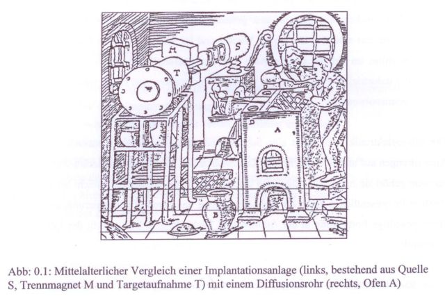 Außerdem, wenn man sich nur mal die erforderliche Qualität des Vacuums ansieht, die man für einen Ionenimplanter braucht und dem was Otto v. Guericke mit seiner Handpumpe an dem Magdeburger Halbkugeln hinbekam, dann sind da noch ein paar Zehnerpotenzen dazwischen. Da reicht noch nicht mal eine Turbomolekuklarpumpe, da muß man schon zu Raffinessen, wie Getterpumpe oder Kryopumpe greifen. Nächster Punkt, ein derartiges Hochvacuum will auch gehalten werden. Da reichen dann nicht mal mehr Viton oder Silicondichtungen, da muß es dann schon Indiumfolie sein. Mit einer Hand voll Heimaterde, wie sie die damaligen Alchimisten hatten, kommt man nicht weit :-)