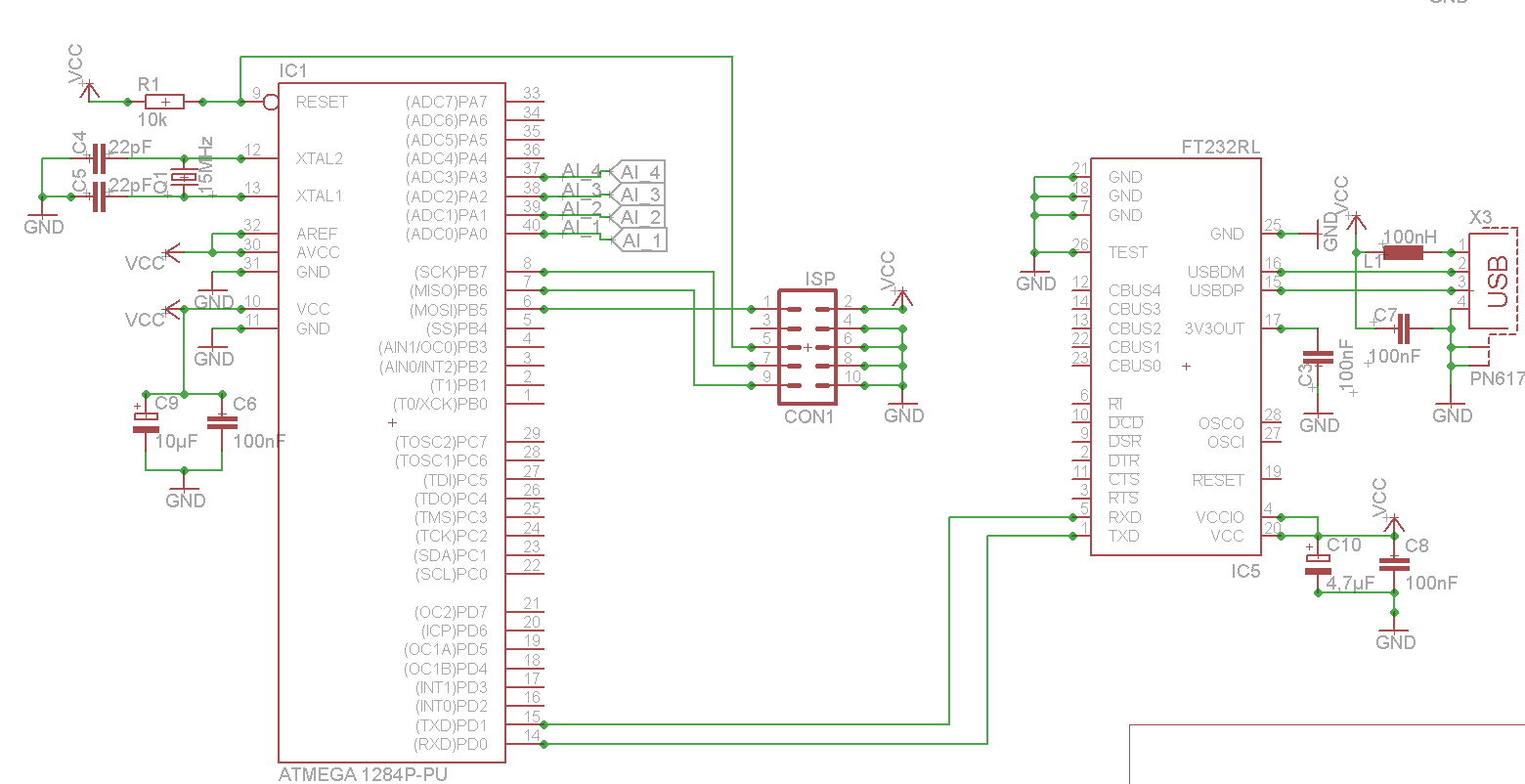 Hallo, ich bin gerade dabei einen Atmega 1284 auzubauen. Ich habe bereits googel durchforstet, konnte aber keine 100% Lösung finden. Da es mein erstes Projekt ist würde ich gerne mal nachfragen ob meine Schaltung soweit i.O. ist. Über den USB kann ich ja beim erstmaligen Einschalten keinen Bootloader draufladen. Über den ISP kann ich aber den Bootloader drauf laden oder? Den USB werde ich später zur Kommunikation mit LabView nutzen. VCC = 5V Vielen Dank. Gruß