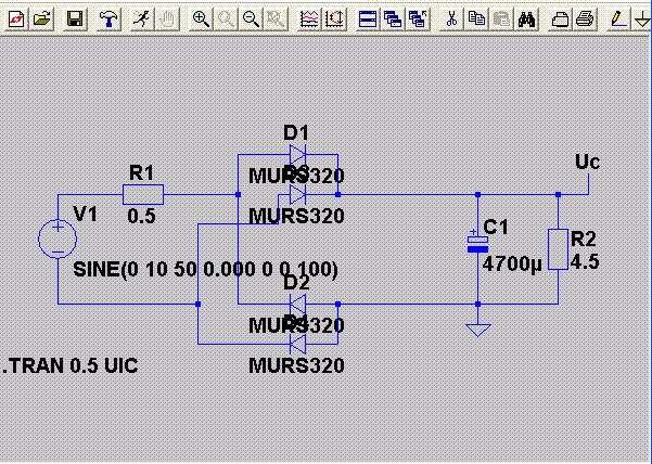 > Man setzt dann nur zw. Gleichrichter und Elko einen (niederohmigen) > Widerstand. Dieser begrenzt den Spitzenstrom über den Gleichrichter. Dann kann man sich auch den teureren Ringkentransformator sparen; einfache Trafos haben den Widerstand schon eingebaut ... > Die nachfolgende Schaltung profitiert dann vom geringeren Ripple auf der > Roh-DC Spannung. Und die erhaltene Gleichspannung ist niedriger. Simulation mit AC 10V Amplitude, Reihenwiderstand R1 = 0,1 Ohm bzw. 0,5 Ohm, Brückengleichrichter, 4,7 mF und Last 4,5 Ohm ergibt die angehängten Bilder.