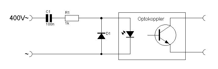 Ob Strom fließt ist im Prinzip egal. Mich interessiert nur, ob der Schalter am Drehstrom ein oder aus ist. An ein Relais hatte ich auch schon gedacht, aber nachdem auf der anderen Seite des Optokopplers ein recht teurer Regler hängt, wäre mir die galvanische Trennung schon wichtig! ;)