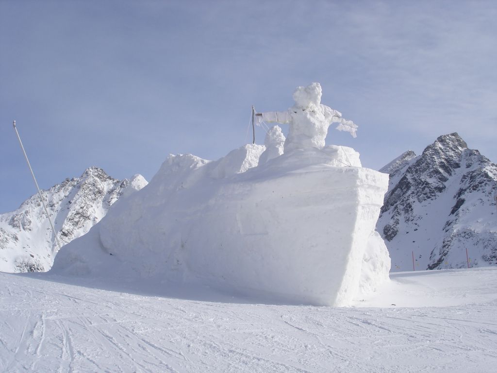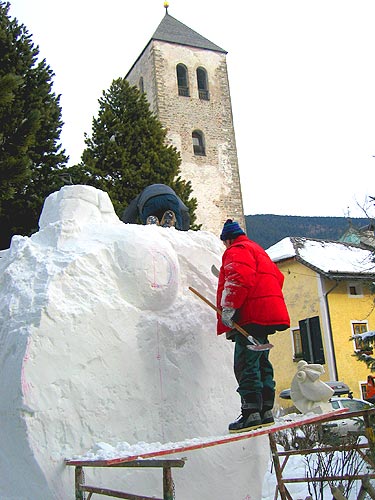 Na ja, ich hab jetzt mal alles auf einen Haufen getan, und oben mal am Bugg die Arme ausgebreitet - erinnert mich irgendwie an einem Kino Film.. mal sehen ob es dann im Frühjahr schwimmen kann .. Wenn ich das jetzt einfriere für den Sommer, kann ich wahrlich Haufen Kohle machen die ich im kommenden Winter verheizen kann. Anbrennen würde ich mich jetzt nicht trauen an der Sin't'n'flut will ich nicht schuld sein. Ich könnt noch so 10er Eiswürfel Beutel vom Superparkt holen und den Schnee da rein pressen und mir das vorgefrorene Pappwasser zu nutze machen den Gefrierschrank vom Strom zu nehmen, müsste einige Grad ausreichen daraus die Kälte entziehen zu können, das wäre doch wenigstens sinnvolles receyclen. Aber was mach ich mit dem Wasserbad dann? Eine Kneip Kur kämme da in Frage. Wenn ich mir das bildlich vorstelle, dass in meiner Gefriertruhe da jetzt eine Reihe Menschen mit hochgekremmpelten Hosenbeinen barfuss auf und ab gen Eiswasser tretten ... sollte ich vieleicht mir Gedanken machen die Gefriertruhe anschliessend zu verkaufen ;-) .. ..das wird nichts..wo soll ich das Wasser hinschütten wenn die einer kaufen will? Wieder eingefrieren und das abpacken als Sud für Suppen. Vieleicht sollte man daraus dann so Suppenwürfel machen, die Leute könnten erst durch den Klee tretten ( spart mir das Rasenmähen ) ein paar Kräuter zwischen den Zehen usw.. und dann passen die Zutaten in der Truhe .. ne... das geht gar nicht, dann müsste ich bis zum Sommer wieder warten bis der Klee kommt... ein Kreuz.. Wenn ich mir die Schnee Skulpturen ansehe, wunderts mich nicht, wenn wir im Frühjahr mit Überschwemmungen zu kämpfen haben, die Winterstauschneegebilde lösen ja richtige Wasserwellen aus wenn die Sonne kommt. Schön sind die schon - gibt es auch richtige Wettbewerbe z.B. in Innichen / St. Vigil, http://www.snow-festival.com/index.php?id=6 ob die meine Container Ware brauchen könnten? Sollte ich mal hinschreiben ;-) Ich werd mal mit meinem Haufen Schnee sowas versuchen, werde Eimer nehmen und reinstampfen. Vieleicht doch einfach beim Schneemänchen bleiben?.. Mal sehen, der nächste Schnee ist im Anmarsch, das gibts ein Problem, zuviel auf dem Markt und der Preis bricht ein und die Nachfrage? Da wunderts mich auch nicht, wenn jeder jetzt noch mal raus geht und den Schnee zu einem Ebenbild rollt. Paar Nachbarn im Kern machen es grad - ok - ich dann auch ;-) wer hat die grösste Burg? Ob die Leute den Zungenzeiger als Spass verstehen? Hey, kommt raus, machen wir ne Schneeball Schlacht .. patsch ;-) lg rudi ;-)
