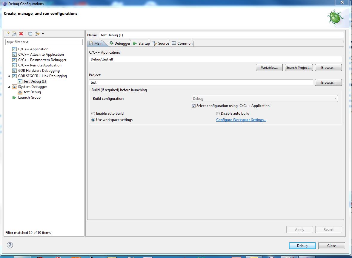 Hallo Leute, ich möchte gerne mit J-Link BASE und Eclpise den Samsung S3C2410A flashen bzw debuggen. Hier die Daten: Entwicklungsumgebung : eclipse-cpp-kepler-SR2-win32 Toolchain: GNU Tools for ARM Embedded Processors (arm-none-eabi-gcc) Target Processor : Samsung S3C2410A Debugger : J-Link BASE external NOR Flash : ST M29W320 Die Einstellungen findet Ihr in den Bildern. Folgende Fehlermeldung kommt: WARNING: PC of target system has unexpected value of 0x0000AB98 after reset. ERROR: Failed to prepare for programming. Readback during RAM check failed at offset 0x0: Expected 00, Found 03. Please check your flash settings! Für jede Hilfe wäre ich dankbar
