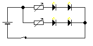 Wüüühriii schrieb: > 9V Block und Parallelschaltung Gleich zweimal nein. 9V-Block habe ich schon begründet. Außerdem: Daniel schrieb: > Bei den LEDs hab ich jetzt 2x3.5V/350mA weiße SMDs (6x6x1.5) und > 2x2.2V/140mA rote SMDs (3.5x3.5x1.2) rausgesucht. wenn er die wirklich mit den Strömen betreiben will, braucht er ca. 1A. Da kannst du regelrecht aufpassen, wie der 9V-Block in die Knie geht. Und die LEDs willst du parallel schalten? Wenn du vor jede LED noch einen entsprechenden Vorwiderstand schaltest dann kannst du es machen, aber nicht einfach parallel. So, und jetzt kommen wir zu den Vorwiderständen, wenn er einen 9V-Block verwendet. Die beiden weißen LEDs bräuchten (jeweils) einen Widerstand, der fast 2W verheizt. Macht 4W. Dazu kommen noch 2x knapp 1W, macht 2W, insgesamt also 6W, die du in Wärme umsetzen möchtest. Schon mal darüber nachgedacht?