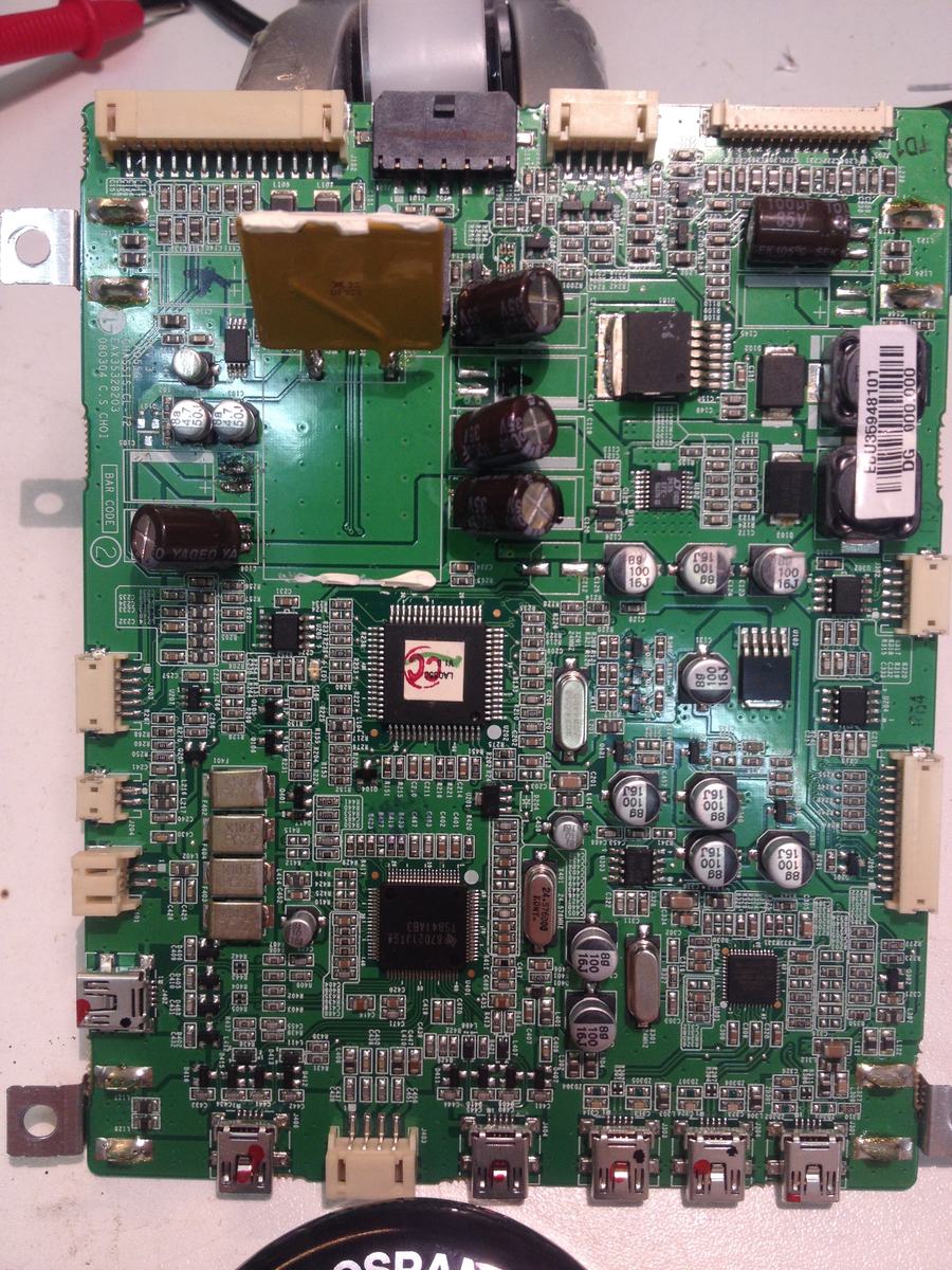 Der Sterbeprozess war plötzlich. Ich habe das Display an einem Tag benutzt und am anderen ging es nicht mehr an. Es hat nur noch die Power LED geleuchtet. Ich habe es auseinander gebaut in der Hoffnung, dass sie Kondensatoren kaputt sind. Jedoch habe ich bevor ich sie ausgetauscht habe ich an den großen Elektrolytkondensatoren die Spannung gemessen. Ich bin der Meinung das es dort auch 24V waren. Dann bin ich mit der Messspitze abgerutscht und es gab einen Kurzschluss an dem Kondensator. Seit dem habe ich nach diesem fraglichen Bauteil nur noch ca. 1,2V.