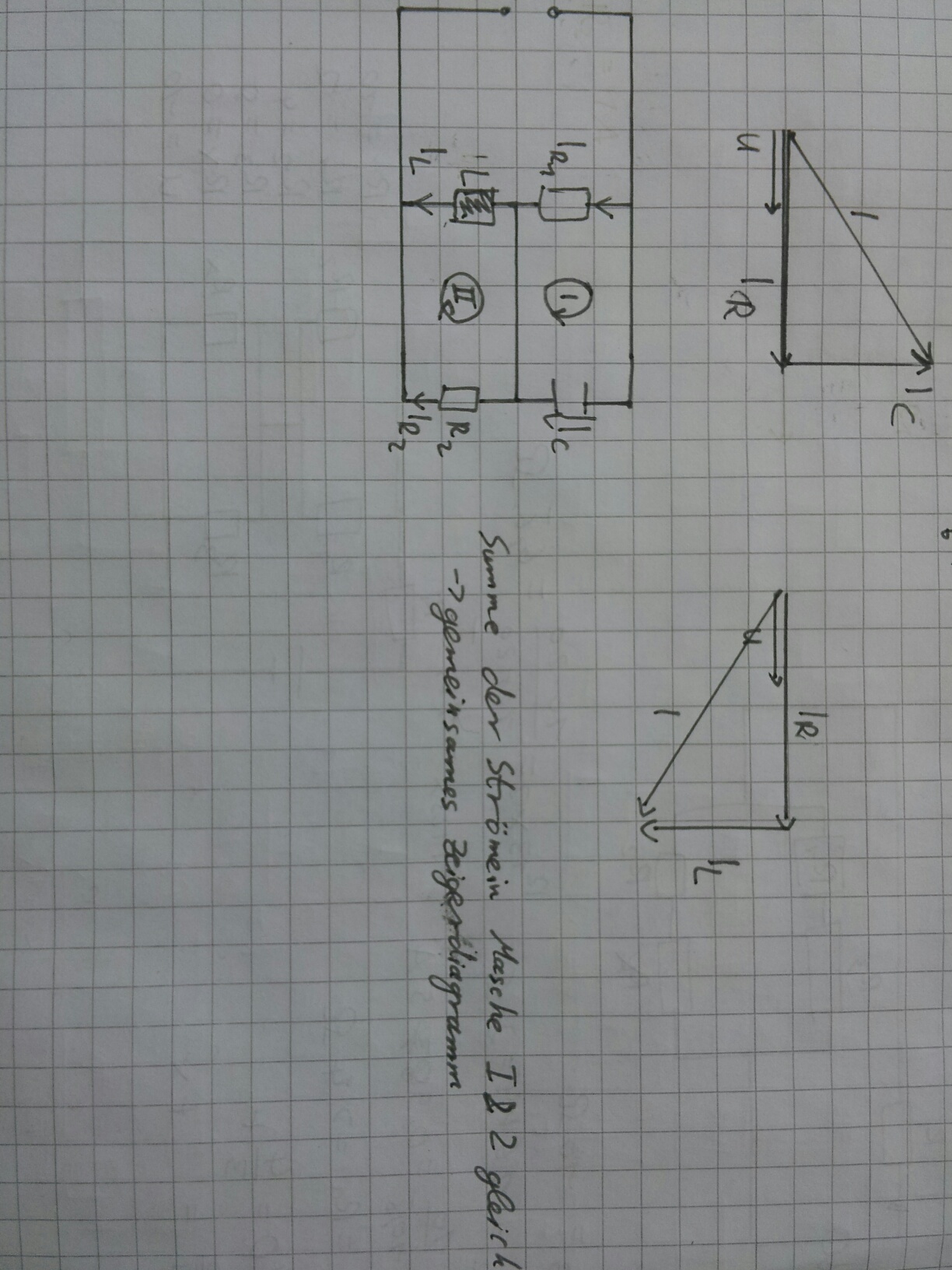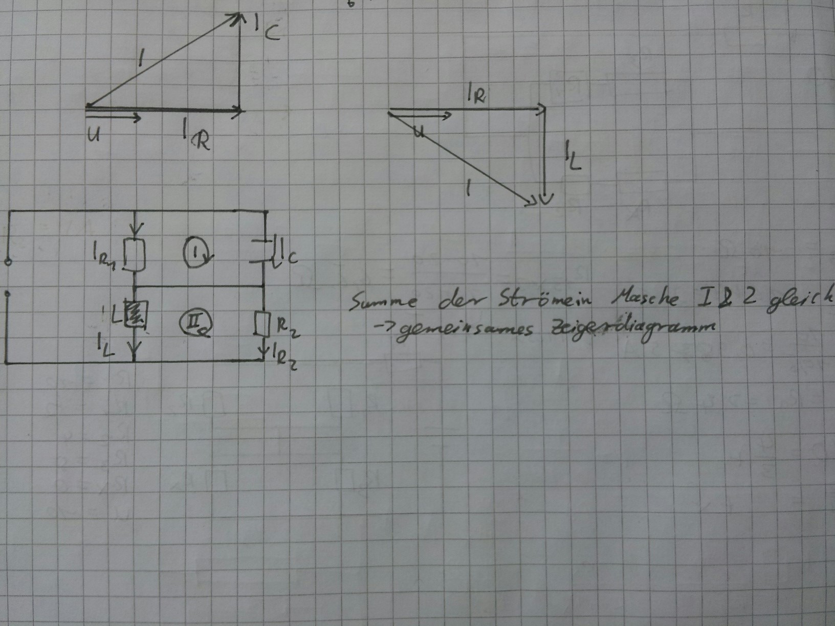 Hi, befinde mich in der Prüfungsvorbereitung und versuche das zu verstehen. Leider verstehe ich aber nicht, warum bei gegebener Schaltung R1 und R3 sowie R4 und R2 parallel geschaltet sind. Wäre super, wenn mir das wer erklären könnte. Bei der zweiten Aufgabe sollen wir jew. ein Zeigerdiagramm für die einzelnen Maschen zeichnen und danach für beide zusammen. Weiß leider nicht ob die Diagramme für die ersten beiden richtig sind. Wir sollen auch U einzeichnen... Vielen Dank! Grüße