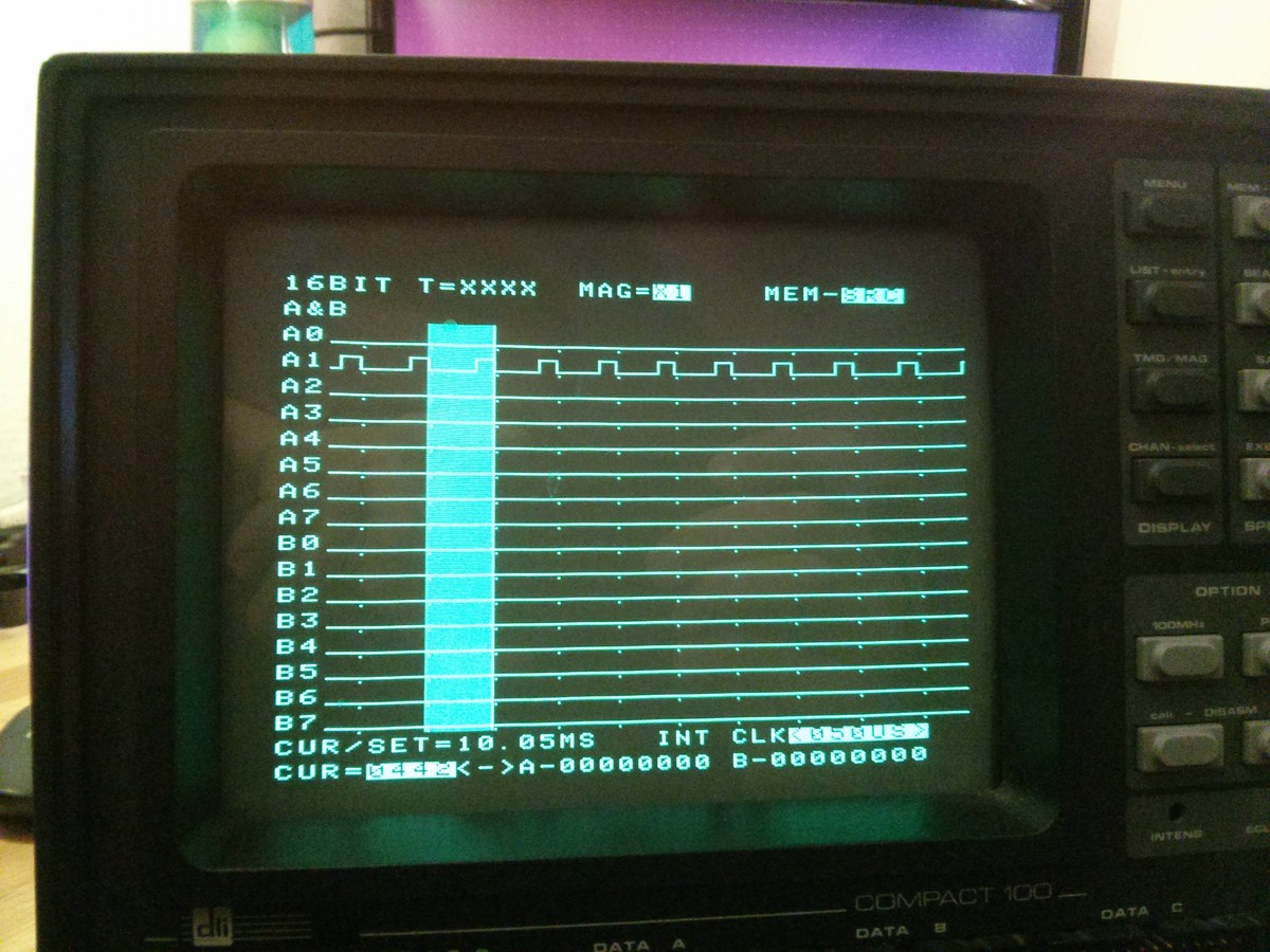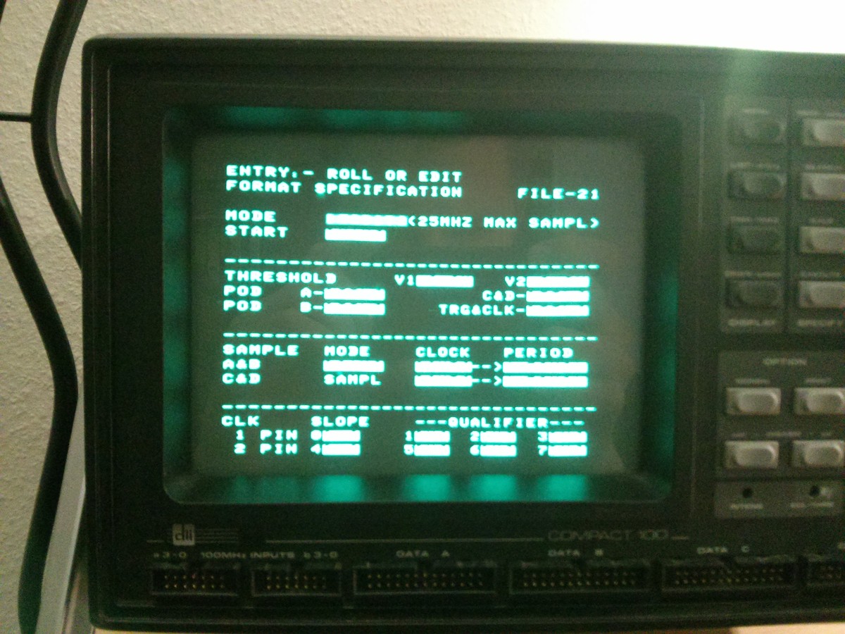 N. A. schrieb: > Wenn du diese Messungen in ein allgemeinverständliches Schaltbild > (bezogen auf die Eingangsbuchsen) mal aufmalst - besser in ein > Schaltbild verwandeln kannst Ja ok, macht natürlich Sinn. Ich habe das Gehäuse als Massebezug verwendet, jetzt machen die Messwerte auch etwas mehr Sinn. Ich vermute, dass man den POD drehen konnte, um die Bitreinfolge zu ändern. google schrieb: > Ohne die dazugehörigen probes würde ich das Gerät nicht nutzen. In den > probes war immer noch eine (Schutz-)Beschaltung drin. Aufgrund des > Alters dürfte da noch ECL-Logik drin sein. Ich habe im Menü die Möglichkeit gefunden zwischen TTL, ECL, V1 und V2 zu wählen. V1 und V2 kann ich unter einem anderen Menüpunkt zwischen -9,9V und + 9,9V definieren..... Beim Sampelmodus kann ich zwischen "SAM" und "LAT" auswählen. Jedoch kenne ich die Abkürzungen nicht. Zudem kann ich noch einen internen und zwei Externe anwählen. In dem darauf folgendem Menüpunkt kann ich ein + und eine - für den Clk einstellen. Ich vermute, dass steht für steigende und Fallende Flanke. Den Menüpunkt "Qualifier" kann ich nicht zuordnen.....