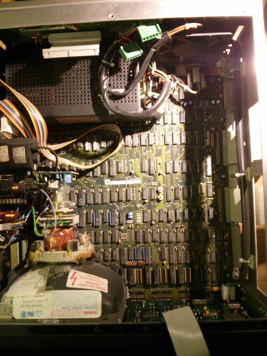 ....so, ich habe das Messgerät einmal zerlegt. Das letzte Bild zeigt den Eingang "Data D" Alle Eingänge sind direkt auf der Platien verlötet, gehen dann auf ein ca 80cm langes Flachbandkabel, welches 1 cm weiter wieder eingesteckt ist (ich vermute auf geplante interne Erweiterungsmodule). So wie es aussieht sind Pin 3-10 und 17-25 die Datenpins (2Pins je Eingang). Pin 13 und 14 sind gebrückt. Pin 11,12 und 15,16 kann ich nicht zuordnen, und Pin 1+2 und Pin 25+26 gehen auf großflächige Leiterbahnen (vermutlich Vcc für die Messsonden). Alle Datenleitungen gehen über R-Arrays auf 74LS244 bzw 74LS240, welches Schmitttrigger (Invertiert bzw nicht Invertiert) sind. Als Maximalspannung sind 7 Volt angegeben. Was ich allerdings nicht verstehe, ist warum je Eingang 2 Leitungen eine Dateneinganges auf den Schmitttrigger gehen???? .....ansonsten befindet sich im Gehäuse nur jede menge diskrete Logik, ein Netzteil und die Steuerelektronik für den crt.