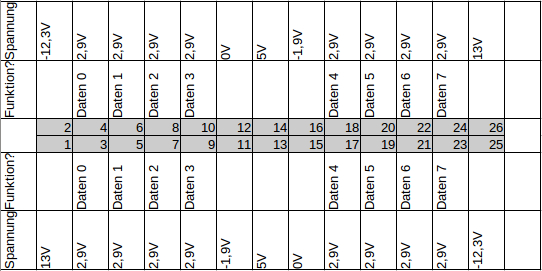 Hey, ein Erfolgserlebnis. So wie es aussieht sind die Datenleitungen Differenziell, wenn ich ein 100Hz Signal mit der Positiven Spannung an den unteren Pin und den GND an den oberen Pin anschließe, wird das Signal dargestellt. Ich werde als nächstes erst einmal Flachbandkabel bestellen.......