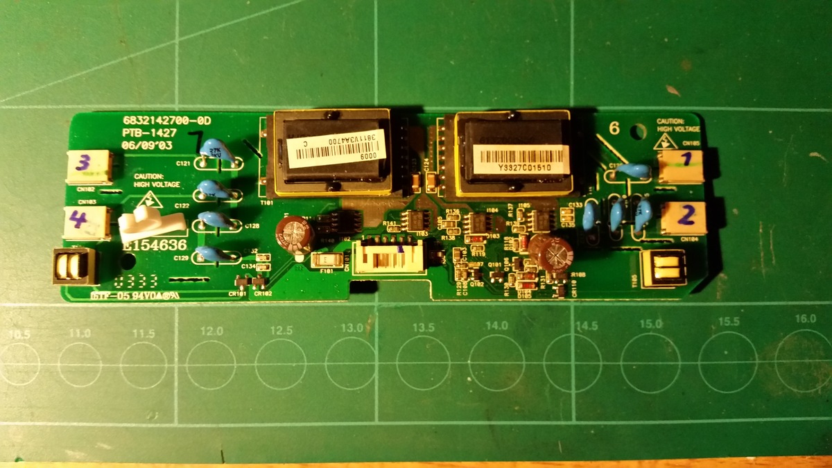 Bei meinem Leuchttisch habe ich die Elektronik des Monitors verwendet. Dachte es gäbe eine einfachere Möglichkeit, z.B. mit einem Netzteil und dieser Platine