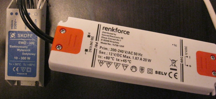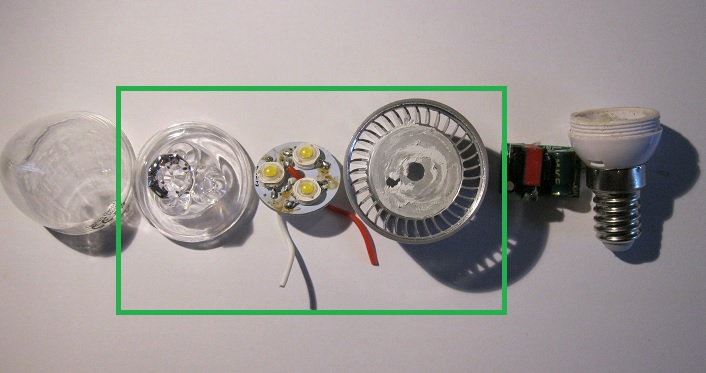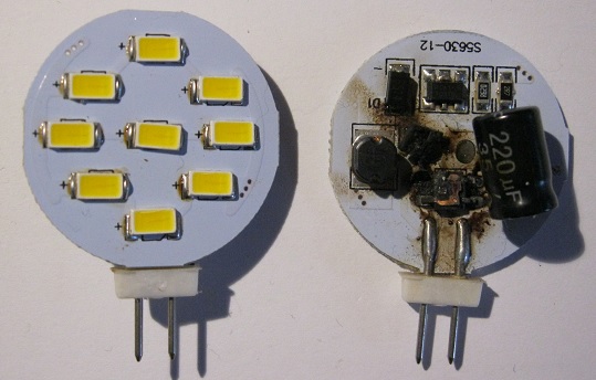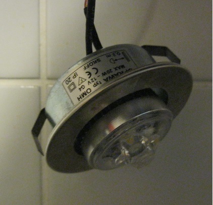 Hallo, vor einem knappen Jahr machte ich, wie vielleicht noch der ein oder andere, ein angebliches Schnäppchen in der Bucht, ich ersteigerte mir mitten in der Nacht ein 10er Pack E14 LED Lampen mit jeweils 3W (man war ich da stolz). Aber naja wie es kommen musste, wer billig kauft, kauft 2mal. Und so verabschiedete sich die erste Birne nach 2 Monaten mit einem lauten Knall und einer dunklen Wohnung, also Sicherung wieder rein und Birne getauscht. Ein dreiviertel Jahr später funktionierte keine der Birnen mehr (aber bei den meisten brannte eine der drei internen LED`s durch, wahrscheinlich kein Wunder bei dieser sparsamen Anwendung von Wärmeleitpaste, bei wenigen gab die Vorschaltelektronik den Geist auf) und der Verkäufer war nicht mehr erreichbar. Aber was nun, die einzelnen kaputten LED`s austauschen und einen ordentlichen Wärmeübergang schaffen, nur um darauf zu warten das die Vorschaltelektronik ausfällt… Nein dazu war mir dann meine Zeit zu schade und mittlerweile waren auch so gut wie überall bessere LED Birnen verbaut. Also musste Gleichstrom her!!! In unserer Küche (diese haben wir vom Vormieter übernommen) haben wir Unterschrankleuchten mit Touchfunktion zum ein und ausschalten (also eine der drei Leuchten hat diese Funktion um alle 3 ein- und auszuschalten), mir wäre zwar aus Effizienzgründen ein Schalter lieber aber naja, da zählt wohl meine Meinung nicht ^^ Design vor Effizienz… Aber ich schweife ab, diese Lampen wurden natürlich mit Halogenlampen mit dem Sockel G4 betrieben, da ich aber nicht gerade ein Fan von heizen mit Strom mit dem Nebenprodukt Licht bin mussten auch hier LED Lampen rein, naja das Ergebnis seht ihr im Bild 3. Da kam mir die Idee warum die E14 Lampen nicht passend machen und mit Gleichstrom betreiben, also mal ran ans Labornetzteil und 12 V direkt auf die LED`s, da fiel mir auf das diese bei besagter Spannung doch ganz schön heiß werden, also mal ein wenig runter mit der Spannung und TADA bei 11,5 V nur minimal weniger Licht (objektiv gesehen) dafür aber auch nur noch handwarm. Perfekt dachte ich mir, also einen passenden Vorwiederstand an die LED Und mit Kühlkörper und Plexiglasfront (Bild 2, grüner Rahmen, verwendete Bauteile der LED-Birne) auf den Sockel der G4 geklebt (Bild4). Das ganze habe ich natürlich bei allen 3 Lampen gemacht und das Netzteil für die Halogener gegen ein 12V Gleichstromnetzteil getauscht (Bild 7). Das Ergebnis seht ihr in den Bildern (5 und 6). Ich weiß das ist jetzt keine Meisterleistung aber vielleicht überlegt ja noch jemand was man mit denen so machen kann. Und ich bin mit dem Ergebnis bis jetzt absolut zufrieden, sind jetzt schon ein halbes Jahr im Einsatz und ca. 3h täglich im Betrieb. Aber nun eine Frage die ich mir noch nicht erklären konnte, manchmal gehen sie einfach aus, man hört das Schalten des Relais für die Tochfunktion und aus sind sie. Aber auch umgekehrt wenn sie im Betrieb waren und unmittelbar nach dem ausschalten, gehen sie wieder an (aber nie wenn sie schon eine Weile aus waren). Das passiert beides allerdings nur ganz selten und auch nie ohne sich mir auffallende Außeneinflüsse, außer dass meine Freundin dann grad immer in der Küche ist. Vielleicht ist sie einfach zu sehr geladen ^^ Jemand eine Idee woran das liegen könnte?