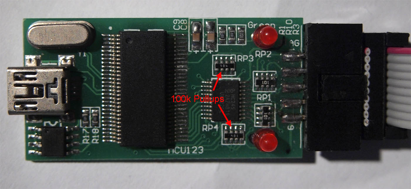 Hallo @ all http://myfreescalewebpage.free.fr/toolbox/logic/logic.htm oben wird recht einfach beschrieben wie das Reprogramming des EEPROM vom Logik Clone funktionieren kann. Leider habe ich nicht genau dasselbe Teil sondern das hier abgebildete. Das EEPROM ist wie beschrieben ausgelötet und durch das 24LC16 ersetzt. Die Logiksoftware von S.... ist installiert. Das Cypress USB Consolenprogramm ist installiert. Problem: Wenn ich nun den Clone anstecke will xp einen Gerätetreiber installieren, von dem ich nicht weiss welchen. Daher wird in der USB Console auch kein Gerät erkannt. Mist 2. ist von einem zu entfernenden Jumper die Rede der bei meiner Board Variante nicht vorhanden ist, aber vermutlich das Beschreiben ermöglichen soll. Was ist also zu tun?