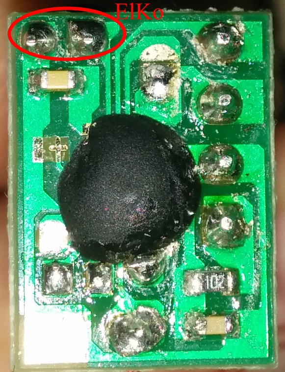 Hallo Leute, ich habe vor ein paar Tagen den DCF1-Empfänger von Pollin gekauft (nr 810 054). Betrieben wird er von mir an einem Arduino Due bei 3.3V. Eine Flanke auf PON wird über einen IO-Pin am Due realisiert. Um die Funktion zu testen habe ich ein sehr simples Programm geschrieben, dass einfach immer den Daten-Pin pollt und das Ergebnis auf einen anderen IO-Pin kopiert. Dort ist dann eine LED. Beobachtung: Die LED beginnt in sehr hoher Geschwindigkeit zu flackern (teils so schnell, dass es eher einer PWM ähnelt, also die LED effektiv gedimmt wird). Es sind keine besonderen Muster erkennbar (auch nach längerer Wartezeit nicht). Zufällig habe ich bemerkt, dass wenn ich den Elko auf der Platine mit einem Finger "überbrücke" (also ich halte einen Finger auf beide Pins), die LED immer weiter stabiler wird, das flackern irgendwann aufhört und schlussletztlich nach ein paar Sekunden funktioniert alles so wie es sollte und ich bekomme ein klares Signal! An dieser Stelle bin ich etwas überfragt, was dieses Verhalten verursacht. Könnt ihr mir da weiterhelfen? Was könnte hierfür eine mögliche Ursache sein und was kann ich konkret probieren? Anhang: die DCF-Platine von der Unterseite mit eingezeichneten Kondensator-Lötstellen Viele Grüße reg