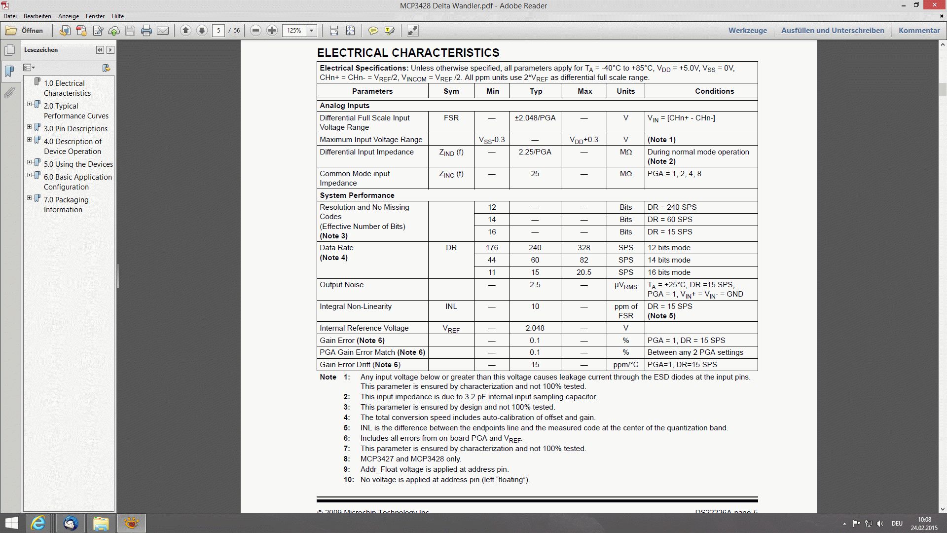 Hallo Ich habe da ein Verständnis Problem bei einem Microchip ADC. siehe Anhang Frage 1. LSB ist 62,5µV bei 16 bit Auflösung also full 4,096V oder +- 2,048V was der URef entspricht. Laut Datenblatt, aber Maximum Input Voltage Range VSS-0.3 — VDD+0.3 was heißt dies. Ist der Vollausschlag am ADC Eingang, bei +-0,3V. Frage 2. Ich verstehe nicht die 9,6 bits Expected Number of Output Code = 9,6 bits for Power Gain = 1 etc.