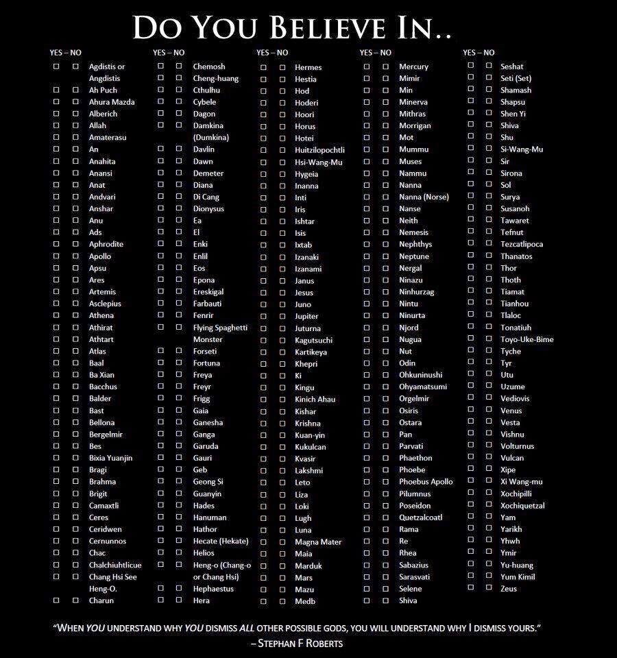 @ Timm Thaler (timm-thaler) >> Das sind aber alles kein göttlichen Wesen, sondern Phantasiewesen. >Also sind Götter keine Phantasiewesen? Sondern? Real? Na dann erklär mal dem Papst und seinen Theologen, dass GOTT in der gleichen Liga spielt wie Einhörner und der Weihnachtsmann. >Klär mal! Du willst es doch gar nicht verstehen.