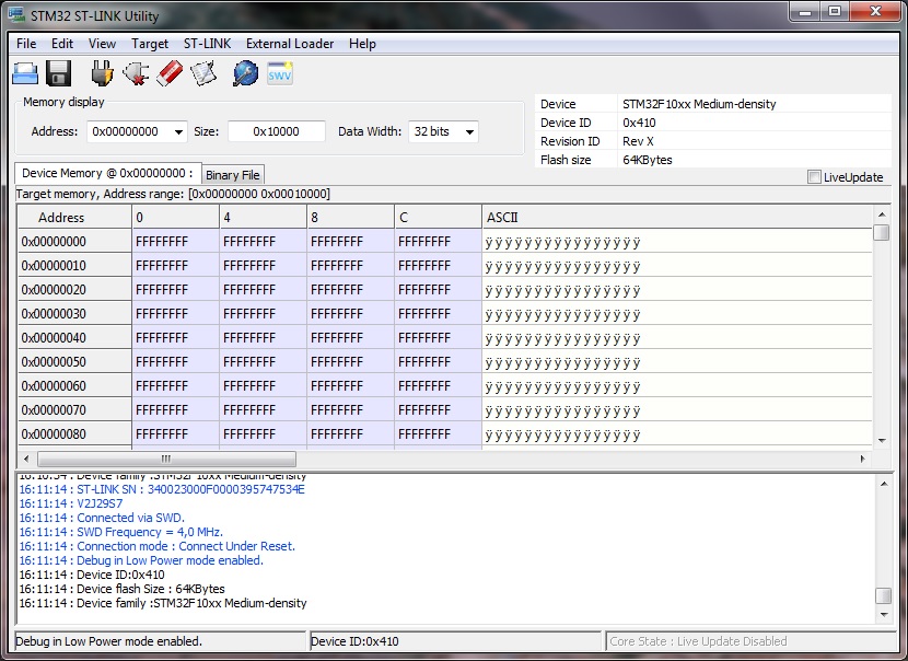 Hallo, ich möchte einen STM32 auslesen, bekomme aber nur FFFF heißt das ich habe versehentlich das Programm gelöscht? Ich habe lediglich in den Option Bytes die Readout Protection auf disabled gestellt, wusste nicht dass ich damit den STM32 lösche? wie muss ich die Adresse und Länge angeben zum auslesen des Programms? Hab heut zum ersten Mal sowas in der Mangel.