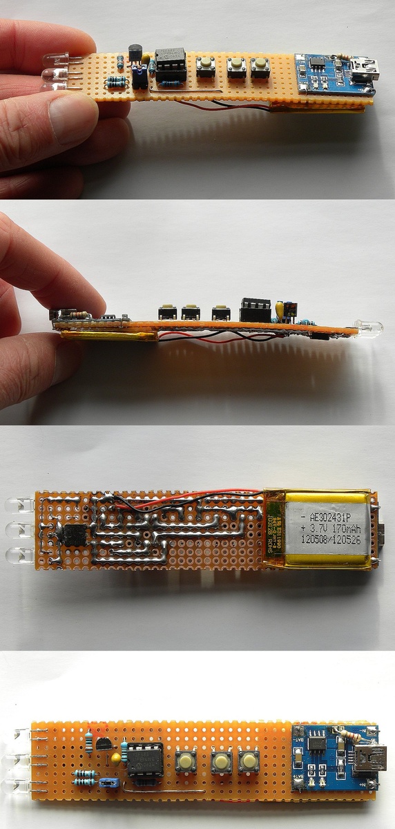 Wie waere es mit einem praktischen Beispiel Dimmbare Minitaschenlampe mit PICF12683 & Ladeschaltung Laden tue ich die Li-Ion mit einem normalen Handynetzteil.Es generell ratsam waehrend des Ladevorgangs die Elektronik(also in meinem Falle die Taschenlampe) nicht eingeschaltet zu lassen,ansonsten koennte die Ladeschaltung die zusaetzliche Last falsch interpretieren. http://www.ebay.de/itm/TP4056-Lithium-Battery-Charging-Board-5v-Mini-USB-li-ion-18650-charger-DL-/261626050211?pt=LH_DefaultDomain_77&hash=item3cea20b6a3