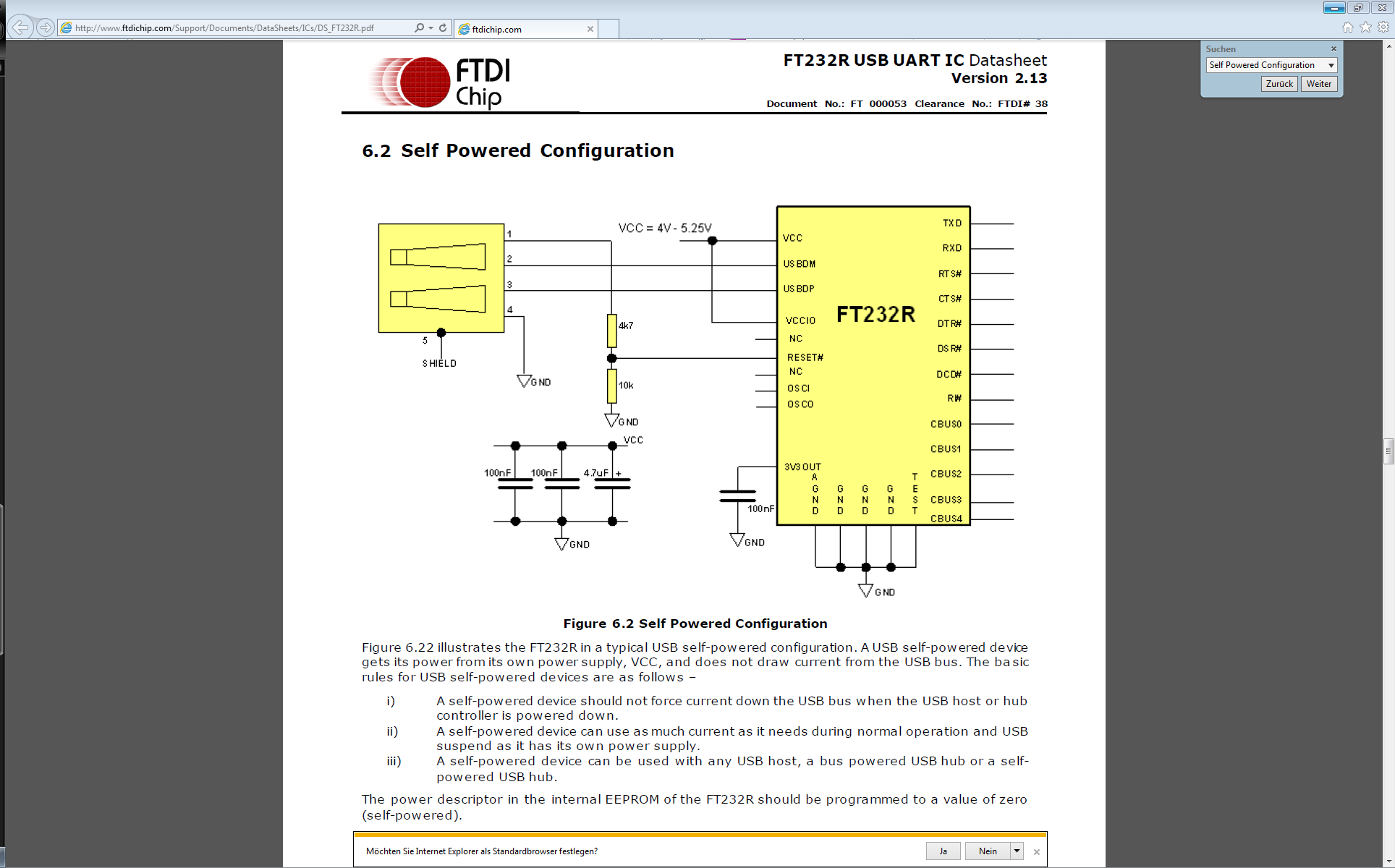 Rangi J. schrieb: > Was soll das denn nun wieder sein? Ich denke so langsam, es liegt an > meiner Schaltung, ich hab aber einfach die Schaltung im Datenblatt "USB > Self Powered Configuration" verwendet, mit einer Änderung: statt der 27 > Ohm habe ich 18 Ohm verwendet, weil ich die gerade da hatte. Ich kann da kein 25 Ohm in der Beispielschaltung von FTDI finden (siehe bild). Du versorgst deine elektronik also extern und nicht über USB mit Strom?