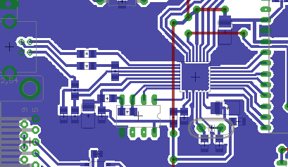 Also, grundsätzlich sehe ich keine unterschiede zwischen dem Vorschlag aus dem Datenblatt und deinem Schaltplan sowie Layout. Was ich aus dem Schaltplan nicht heraus lesen kann, ist, ob du die drei Decoupling Capacitors (Figure 8, unten links) vorgesehen hast. Im Layout sind da welche, aber im Schaltplan sehe ich die nicht. Was mir auffiel: -die Anbindung von Masse und VCC ist schlecht. Vcc läuft über eine sehr dünne Leiterbahn (rot) und die Massen der Kondensdatoren müssen große Wege um den Chip herum zurück legen. An Pin 17 z. B. muss der Strom unter dem Chip-Pin und dem Chip nach links durch. Unten bei Pin 26 muss der Strom von der Kondensatormasse eine große Schleife um den Chip nehmen. An Pin 3 ist der Kondensator sogar ziemlich weit weg. -der Quarz wird wohl korrekt tun, aber auch hier sollten die Kondensatoren zwischen Quarz und Chip und deren beide Massepins möglichst dicht an Pin 29 (AGND) -hat das EEPROM eigentlich einen Stützkondensator? Ich vermag da keinen zu erkennen... Was ich derzeit denke: eine schlechte Abblockung führt dazu, dass der Chip beim Versuch zu senden eventuell Übertragungsfehler verursacht. Es passt zwar nicht dazu, dass per FTProg der Chip koinfiguriert werden kann, aber was anderes sehe ich als Fehler derzeit nicht. Probiere zuerst vielleicht mal die im Datenblatt dargestellten 27 Ohm statt der 18 Ohm.