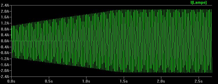 Warum du die Ansteuerung unsymmetrisch gemacht hast, erschließt sich nicht für mich. Aber die Kurve für die Helligkeit sieht vielversprechend aus! Anbei die Sim mit einer realitätsnahen Lampe. Wie gesagt, die hat 60W und 13,2V. Die Vorheizung funzt in der Sim nicht. Müßte ich Schalter einbauen. Warum hast du nicht NMOS-FET genommen? SPICE-Problem: Die Kurve power zeigt die Lampenleistung an. Funzt aber nicht mit der Formel. Weiß jemand warum? Eigentlich soll die Leistung innerhalb einer Halbwelle integrieren. Hm.