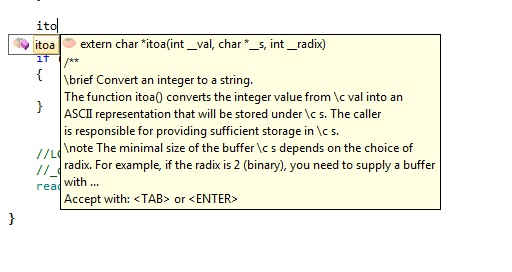 Hallo, im AVR 5 gibt es eine codevervollständigung. Es werden also CodeSchnipsel vorgeschlagen. Wenn man nicht eigene Funktionen vorgeschlagen bekommt, ist sogar eine kleine Beschreibung dabei. Meine Frage, weiß jemand wie ich für meine eigenen Funktionen so ne beschriebung einfügen kann? Lg =)