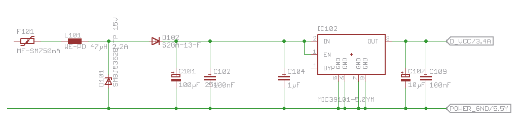 MaWin schrieb: > Das Datenblatt sagt auch, daß der ESR nicht unter 100mOhm betragen soll, Ja das steht da auch, aber ich bin ja nicht drunter. Da steht auch noch: A low-ESR solid tantalum capacitor works extremely well and provides good transient response and stability over temperature. Also habe ich das doch richtig gemacht oder? > und du schaltest 100nF parallel. Ist das ein Fehler? Habe mal der Vollstandigkeit halber die ganze Spannungsregelung angehängt. Da sind ja nich Sicherung, Dioden und ein paar andere Kondensatoren im Spiel. Schlag mich nicht wenn ich da auch noch Fehler drin habe. Bin halt kein Elektroniker :-(