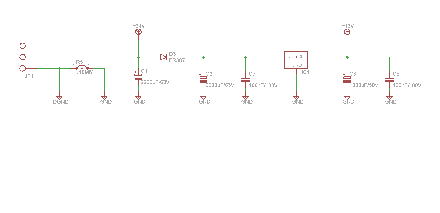 Hallo. In einer fertigen Motortreiberschaltung (H-Brücke) wird die angehängte Schaltung als Spannungsversorgung verwendet. Der Motor (24V/400W) hängt - wie zu vermuten - an den 24V. Die 12V werden "nur" für die Ansteuerung der MOSFETs per HIP4081 verwendet. Soweit ist alles klar, nur für D3 will mir kein Grund einfallen, warum man an dieser Stelle eine Diode einbauen sollte. Noch dazu eine Diode mit FR307 mit 3A. IC1 ist ein LM7812. Vielleicht fällt ja jemandem etwas ein. Pepe.