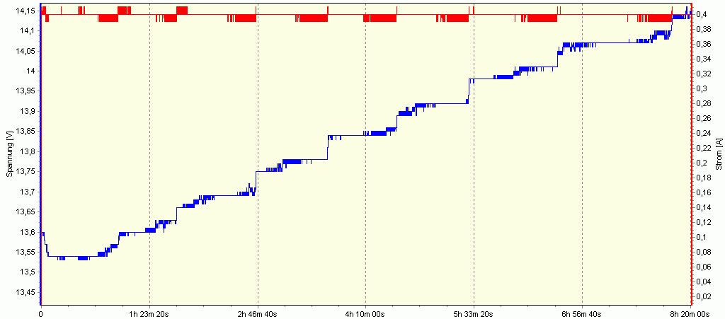batman schrieb: > Blubberts? Ja, etwas. Hört sich an wie Sprudelwasser nachdem es eingeschenkt wurde. Die Frage ist, ob die Säuredichte nur deshalb zunimmt weil der Säurestand durch Wasserstoffbildung absinkt, oder weil ein anderer chemischer Prozess (Sulfatrückbildung) gleichzeitig gstattfindet. Auf Letzteres hoffe ich natürlich. Ich muss mal zusehen, dass es mir gelingt den Füllstand genau zu überwachen. Dann kann ich das feststellen. LG old.