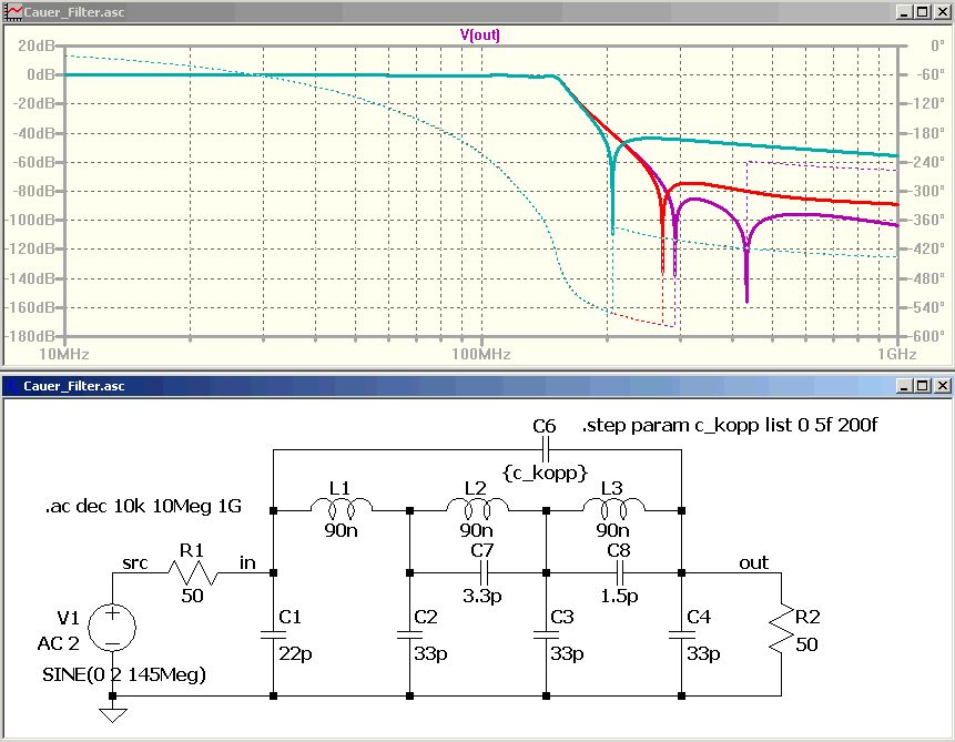 Hier noch ein Beispiel für ein mit "Elsie" berechnetes Cauer-LPF. Mehr Pole gehen mit der Freeware-Version nicht. Horst