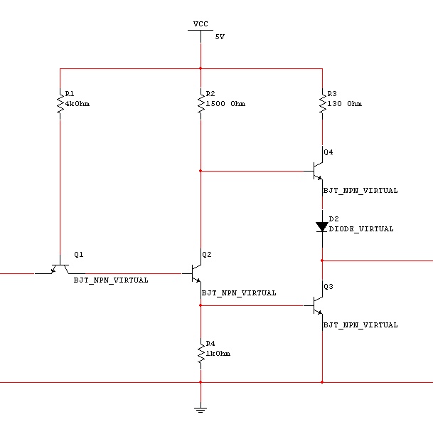 Hallo, ich hoffe ihr könnt mir bei folgendem Problem weiterhelfen: Ich möchte gern eine TTL Inverterschaltung bauen für 5V und 33Mhz. Im Dateianhang seht ihr schon meinen Ansatz. Problem ist, dass die Schaltung anscheinend nicht hinterkommt wenn ich sie mit PSpice simuliere. Habt ihr vielleicht Tipps für mich welche Tranistoren ich verwenden soll, wie groß die Widerstände sein sollen oder sonstige Sachen damit ich meinem Ziel näher komm? Herzlichen Dank, Jörg