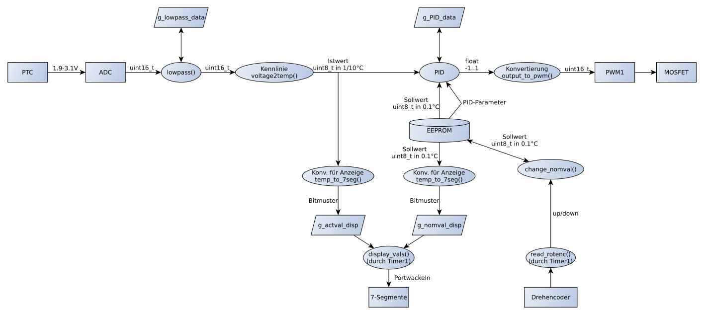 Ulrich F. schrieb: > Datenflussdiagramme Finde ich 9000 mal hilfreicher als Flussdiagramme oder Nassi-Shneidermann. Grobes Beispiel im Anhang (ich male sowas aber von Hand und schreibe formlos noch viel mehr Details dazu).