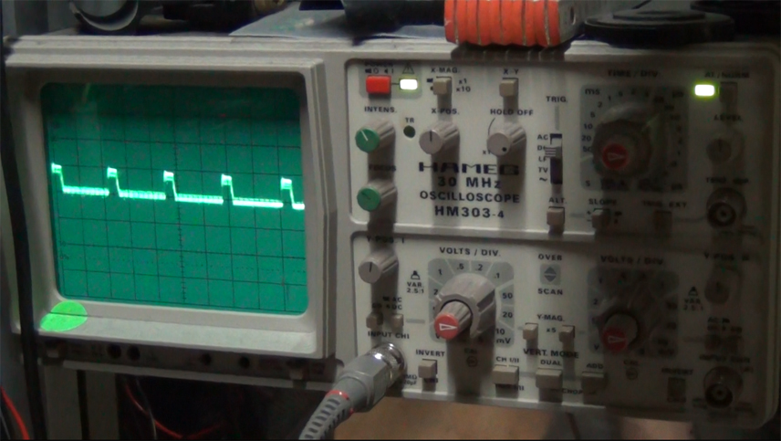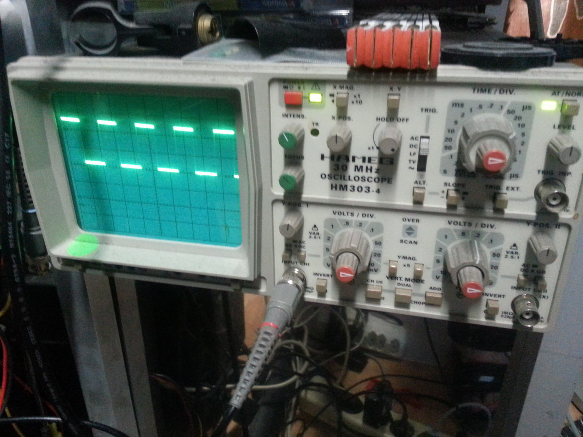 Hallo, ich hab ein Laufband (Sportgerät) und ich möchte denn mit AtMega ansteuern (Arduino) Der Steuerungskasten, der zu diesem Laufband dazugehörte, erzeugt ein Signal wie auf dem Bild zu sehen ist. Ich habe (Oszilloskop) auf 20 mikro Sekunden gestellt, dann war dieser Frequenz zu sehen. Wenn ich mit Arduino versuche einen ähnlichen Frequenz zu erzeugen dann ist High und Low gleichmäßig. (zweites Bild) Wie kann ich das ändern? In wiki: http://de.wikipedia.org/wiki/Pulsweitenmodulation#/media/File:Pulse_wide_wave.svg ich müsste einmal T festlegen, dann kommt dieser t1 welcher sich variieren lässt. Gibt es eine Library dazu oder wie programmiert man das überlicherweise? Zweite Frage: Wie kann ich diesen Frequenz in einen genauern Wert messen?