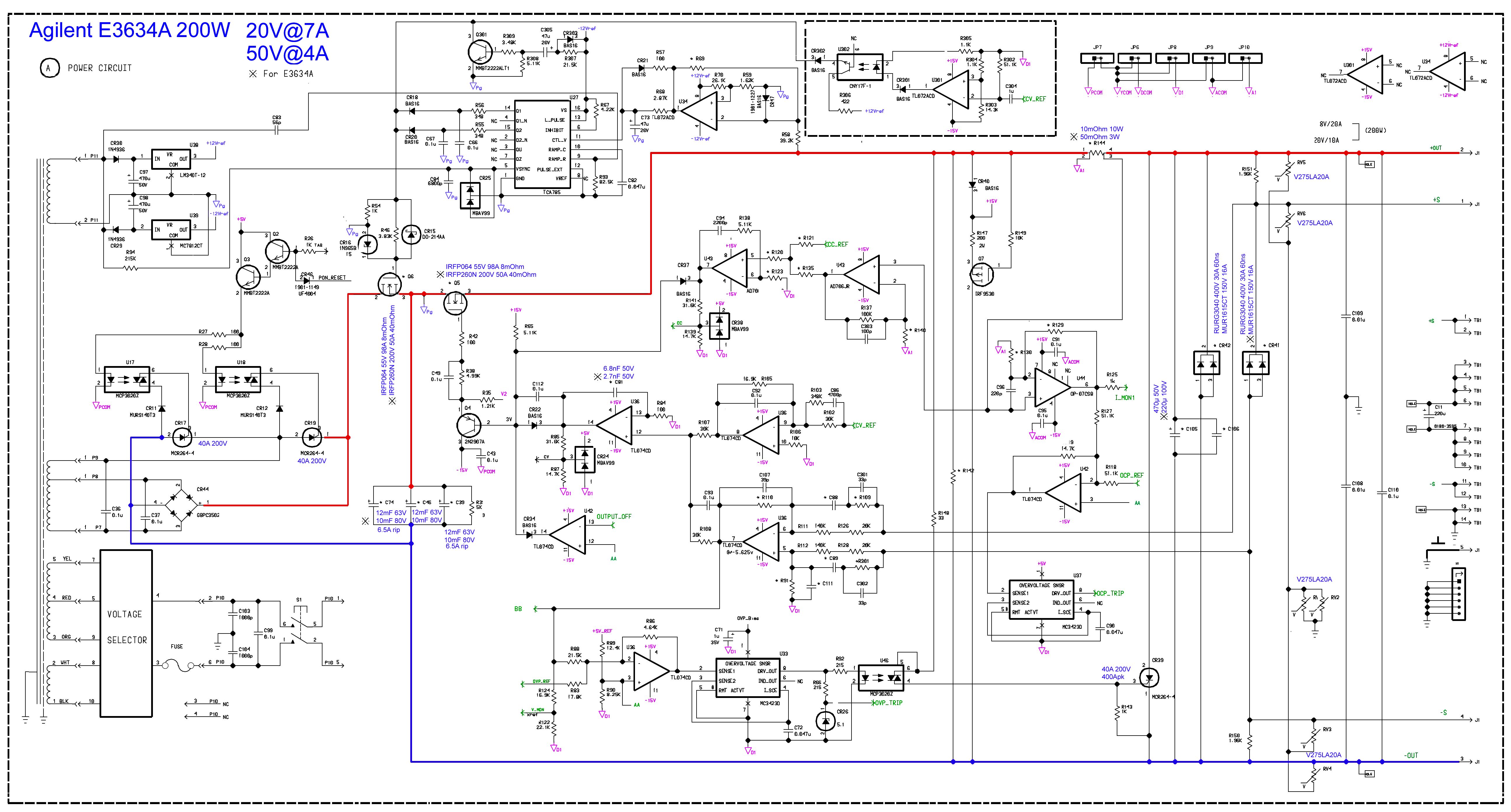 Hier ein Beispiel für eine Crowbar OVP, wie sie z.B. in einem Agilent E3634A LNG zur Anwendung kommt. Der Thyristor ist mit 400Apk spezifiziert. > wie man diese Auslösespannung ermitteln soll. Z.Z. fällt mir da nur ein > Doppelpoti ein. Die Potieeinstellerei ist doch sowas von vorgestrig.... heute nimmt man doch für sowas DACs und hat dann alle Vorteile einer µP gesteuerten Prozessführung.