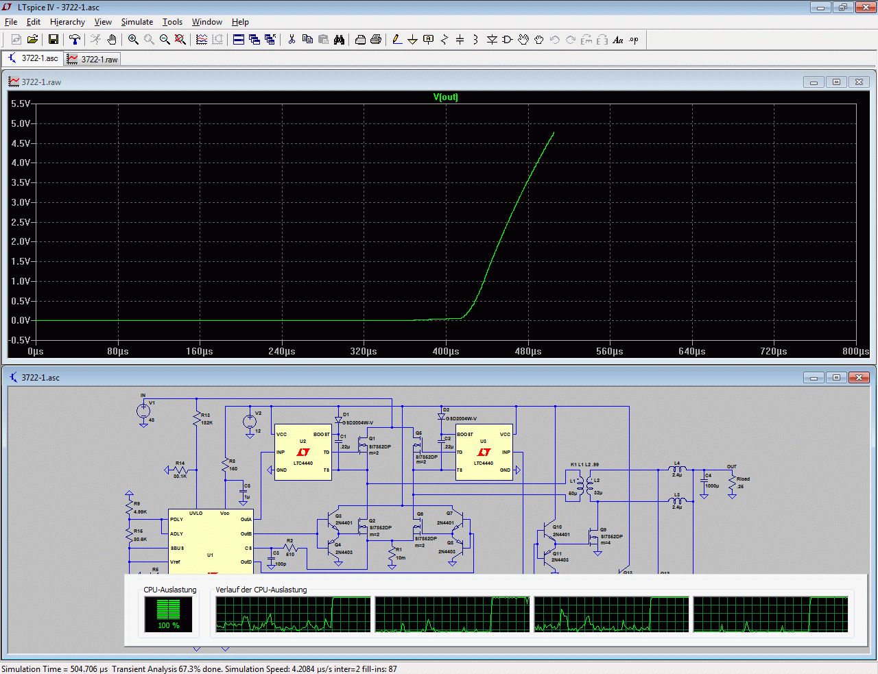 ok, habe jetzt 2-mal LTSpice offen und lasse die Simulationen gleichzeitig ablaufen, jetzt hab ich 100% CPU auslastung: