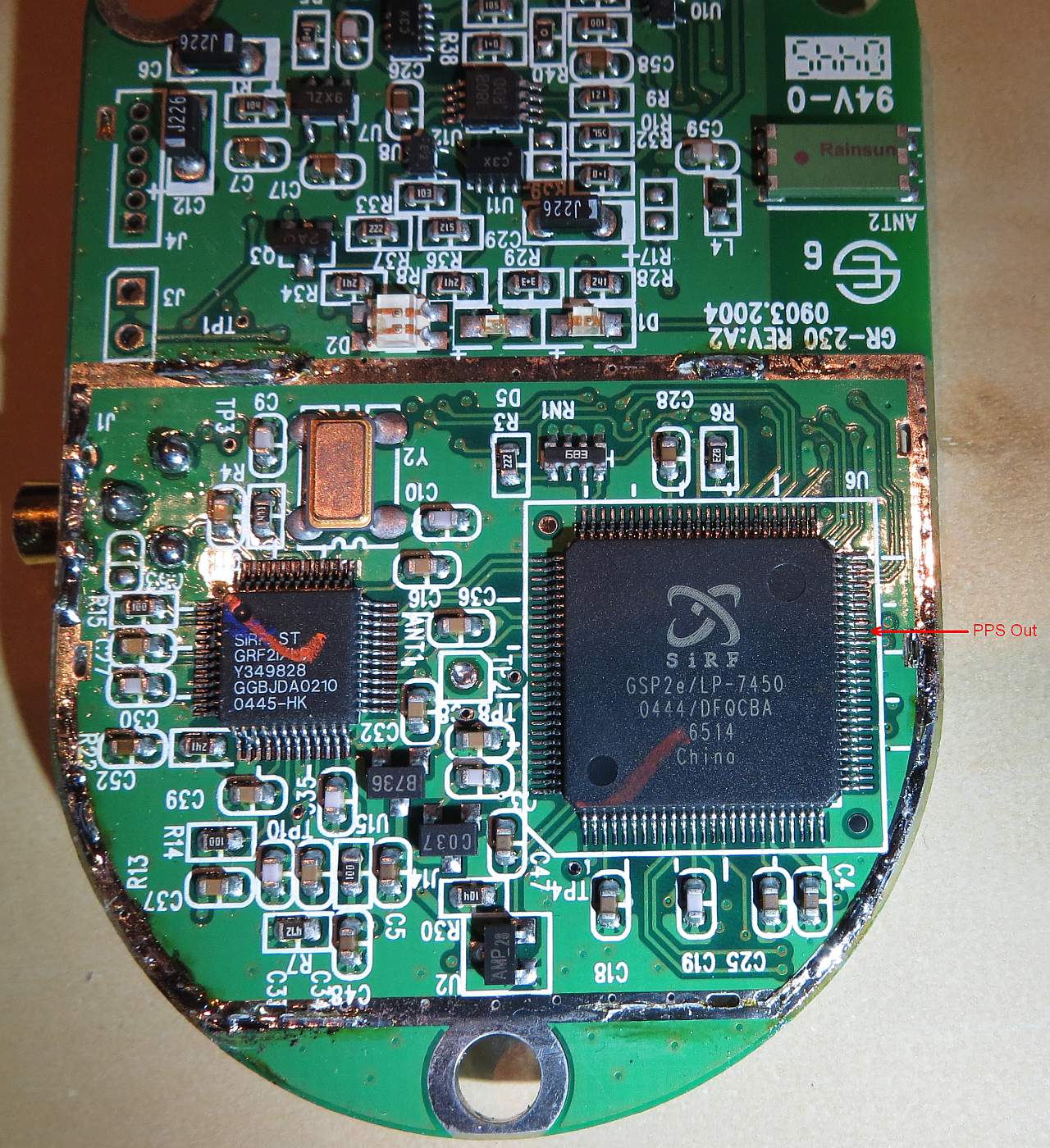 Mile Strk schrieb: > Leider, es ist unmöglich, den J1 Stift zu erreichen, wobei der > Oszillator ist zu nah. > > Nichts von meiner Projekt, leider. > > Oder vielleicht weiß jemand, wo es eine Punkt gibt mit 1PPS Signal so > das ich kann leichter ein Draht gelöten? Schade. Bei einem Holux GR-230XX konnte ich auf keinem Prüfpunkt das 1PPS-Signal finden. Dafür ist der GSP2e im 100-TQFP verbaut wodurch ohne Probleme das Beinchen kontaktiert werden konnte. Das 1PPS- bzw. Timemark-Signal wird durch die Abschirmung nach außen geführt, allerdings habe ich die Qualität des 1PPS noch nicht geprüft. Nach dem Einschalten werden manchmal ein paar Impulse ausgegeben, danach erst wieder wenn GPS-Empfang besteht. Wenn der GPS-Empfang unterbrochen wird, werden weiterhin 1PPS-Pulse ausgegeben. Merkwürdigerweise wird der 3D-Fix seit dem Öffnen nicht mehr durch Blinken angezeigt. Dafür gibt es jetzt die PPS-LED.
