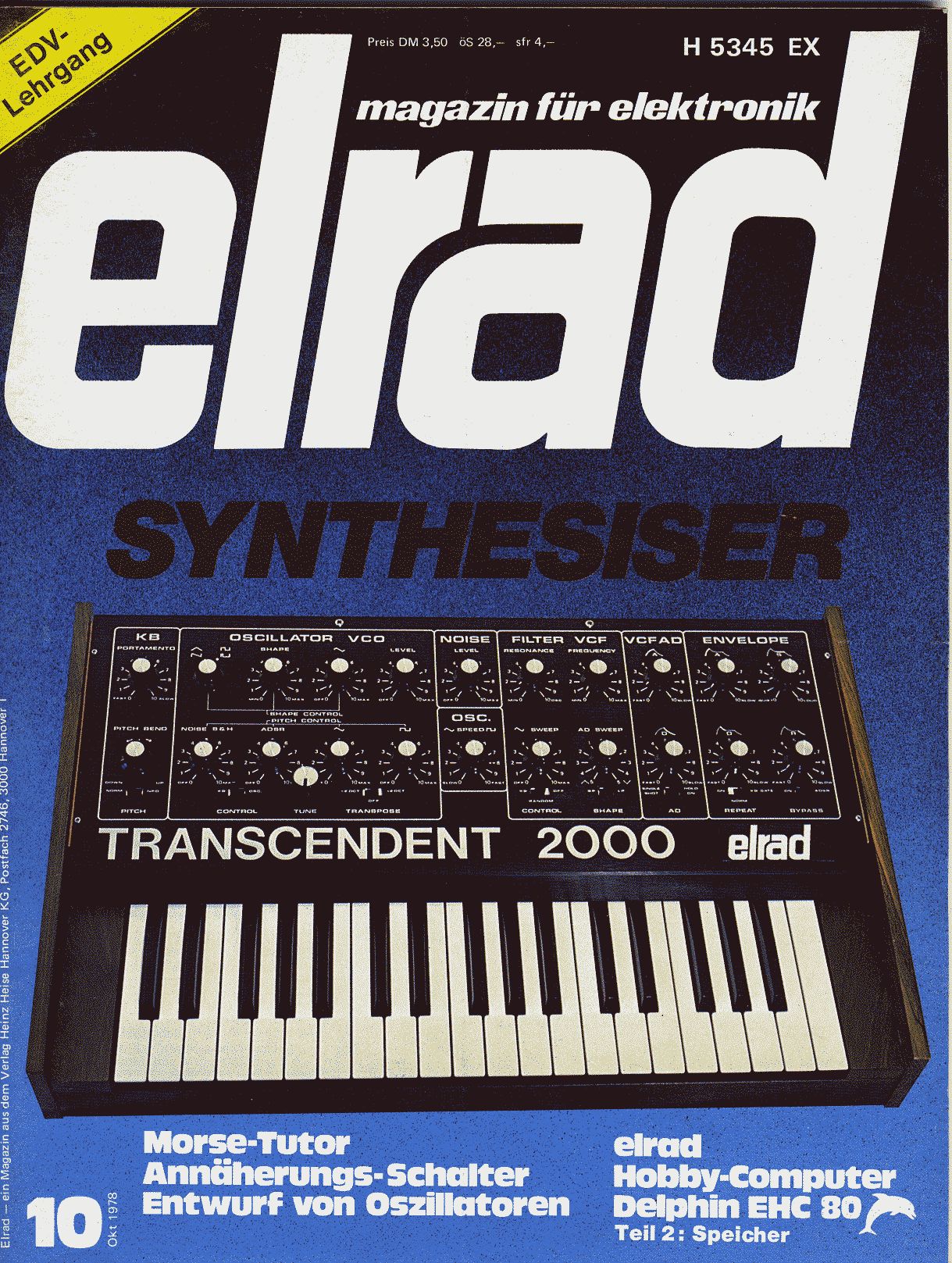 Es gab meines Wissens zwei Synthis, den Formant(Elektor) und ein etwas kleineres Teil, der war bei Elrad drin. Die ELO kam nie über Transistorpiepsen hinaus. Die wirklich guten Sachen aus dem Franzis-Verlag waren eh in der mc drin (EMUF & Co). Gruss Jadeclaw.