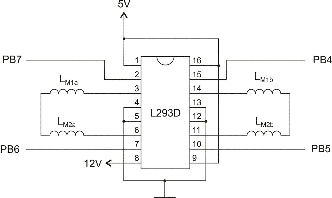 Wenn schon getrennte Vers.spannungen benutzt werden, dann verwende doch gleich Optokoppler, um uC und L293 galv. zu trennen.