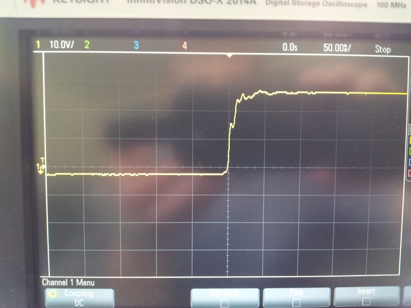 Gemessen hab ich das Zeug natürlich ;-) Im Anhang ein paar Bilder. Eingangsspannung 28V. Eingangsstrom 2.33A. Ausgangsspannung 23.9V. Ausgangsstrom 2.5A. Erstes Bild: Switchnode positive Flanke. Es klingelt ein kleines bisschen, aber ich glaube das ist noch nicht so schlimm oder? Zweites Bild: Switchnode, etwas herausgezoomt. Drittes Bild: Rippel am Ausgangskondensator. Viertes Bild: Mein Tastkopf-Adapter ;-)