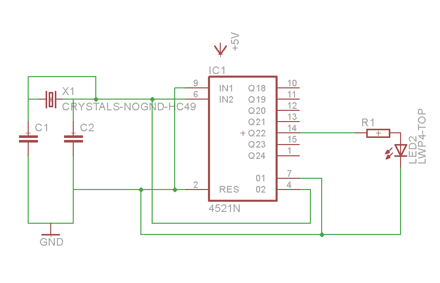 Hallo Ich bin ein ziemlicher Neuling und habe mir zum Einstieg ein Uhrenprojekt rausgesucht. Jedoch funktioniert das ganze leider bisher nur wenn ich den Sekundentakt per Taster vorgebe. Hat vielleicht jemand eine Idee was ich am quarz falsch angeschlossen habe? Bisher leuchtet die LED entweder dauerhaft oder gar nicht. C1 und C2 haben eine Kapazität von 22pF Habe auch schon diese Schaltung ausprobiert: http://www.jb-electronics.de/html/elektronik/digital/d_takt2.htm jedoch ist nur der IC sehr heiß geworden und die LED hat dauerhaft gebrannt. grüße Julien