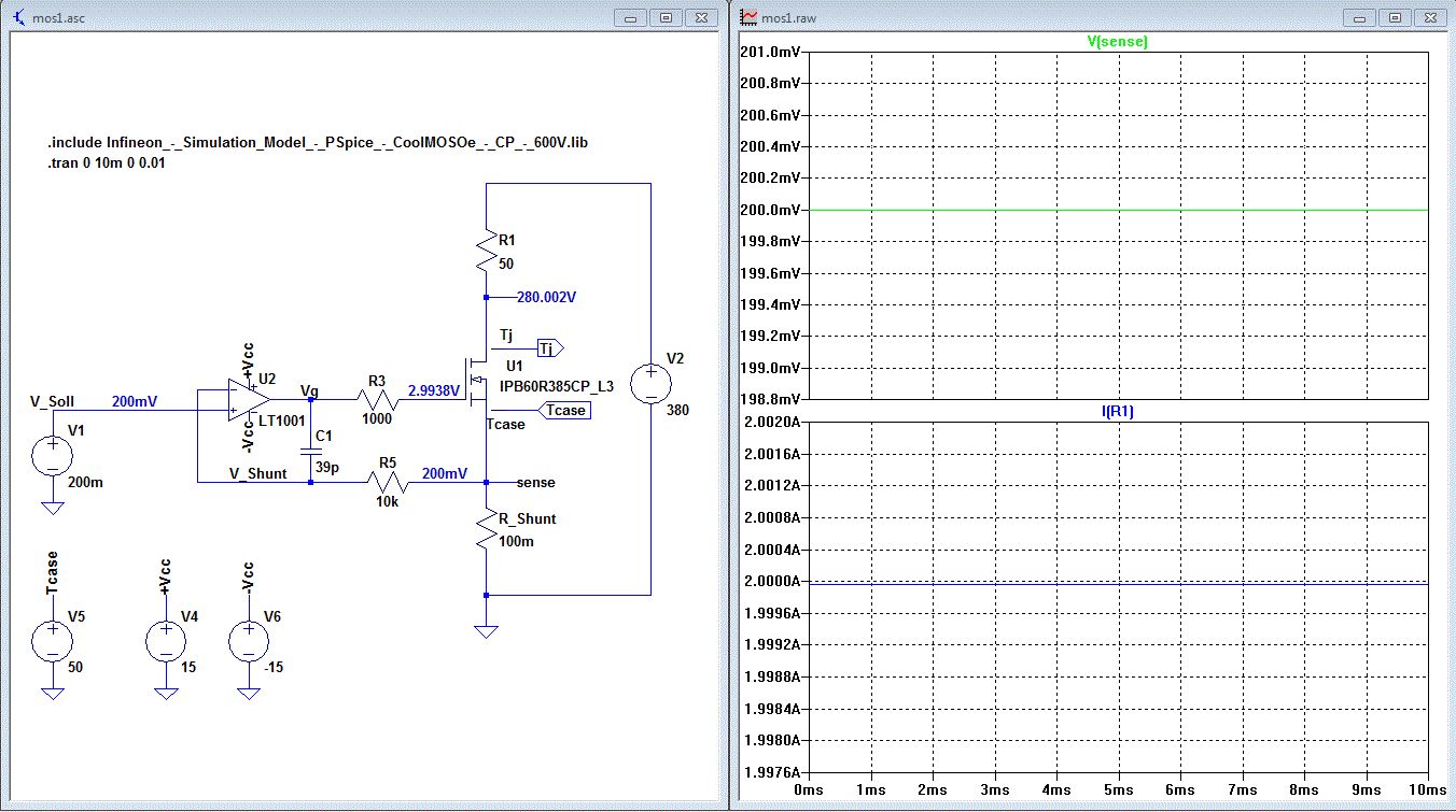 Halle alle zusammen, Ich habe die Schaltung von http://www.mikrocontroller.net/articles/Konstantstromquelle#Konstantstromquelle_mit_Operationsverst.C3.A4rker_und_Transistor in LT_Spice simuliert (anbei die Datei). Ich habe dazu einige Sorge und zwar erstens die Spannung am Gateanschluß liegt bei 170 V anstatt 5V ungefähr und dies wundert mich. zweitens die Temperatur der Chip liegt ungefähr bei 1MV und ist auch sehr viel, weil der MOS nur maximal 170° aushalten kann. Könnte Sie mir sagen, wo meine Fehler liegen. Lieber Grüßen Xavier