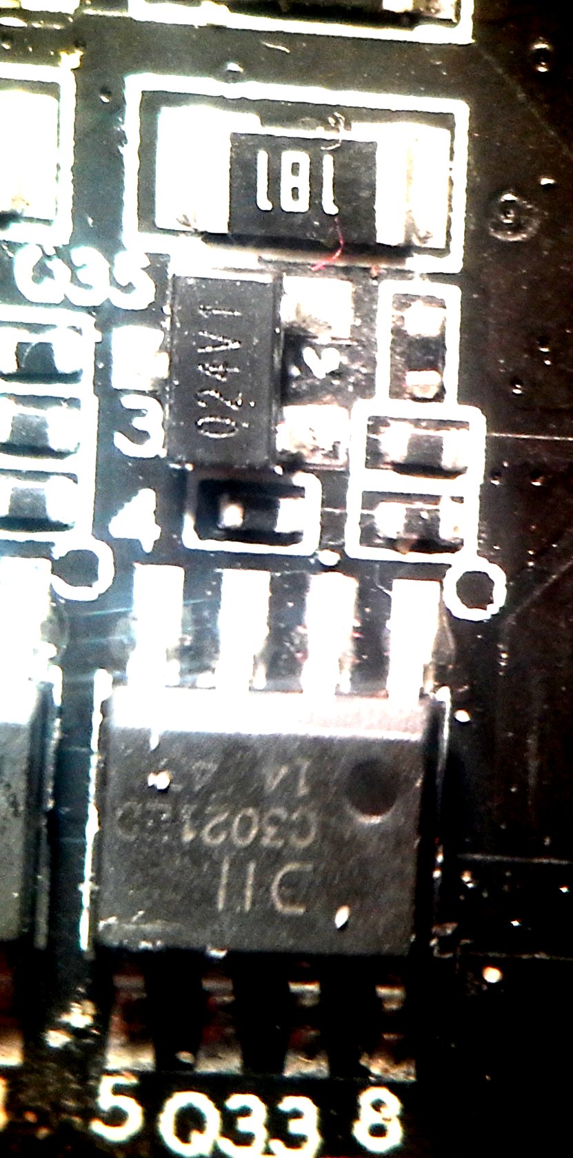 Moin, ich habe hier einen Kauf-Quadcopter vom Typ Parrot Bebop, bei dem der BLDC-Steller abgebrannt ist. Den Typ des MOSFETs konnte ich bestimmen, aber da ist noch ein Halbleiter, der vielleicht auch kaputt ist und den ich deshalb bestellen wollen würde. Es handelt sich um ein SOT23-3 Gehäuse mit der Aufschrift "024V1" oder "O24V1". In einschlägigen Datenbanken bin ich nicht fündig geworden. Es ist neben einem 18 Ohm Widerstand verbaut, der vielleicht der Strommessung dient (der Copter schaltet bei Blockade die Motoren ab). Habt Ihr eine Idee? Gruß Christoph