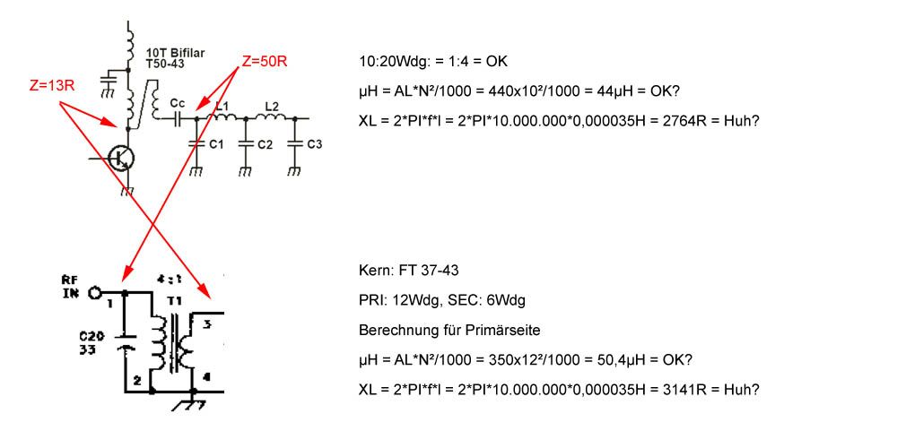 Hallo liebe Gemeinde! Ich hab da noch ein Verständnisproblem. Das betrifft Impedanztransformation. Bevor ich jetzt viel schreibe und nur Verwirrung stifte, habe ich das, was mich irritiert, in einer Grafik an Hand von zwei Beispielem zusammengefasst. Mich interessiert, wie die Werte für die Wicklungen zu Stande kommen. Rein rechnerisch kann ich das nicht nachvolziehen. Google ist hier, bis auf echt harte Fachlektüre, auch nicht hilfreich. Ich denke mir, dass es da doch einen einfachen Einstieg für das verständis geben muss? LG & Merci