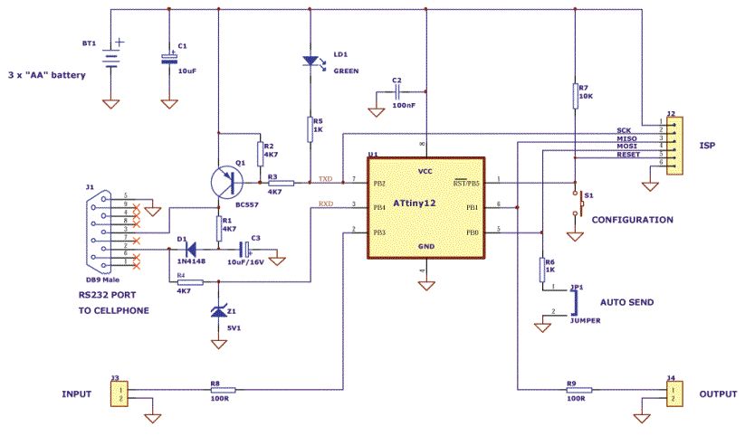 Pegelwandler mit 2 Transistoren: BC547 und BC557 http://www.somiflex.de/clipswitch/progs/ATTinySMS.pdf