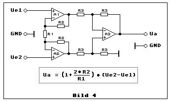 Hab ich nicht bedacht gahabt. Ich betreibe den LM 234 mit einer symmetrischen Spannungsversorgung, also +/-14V. Das ding geht zwar auch mit einer assymetrischen (also 0V, 12V), dann ist der minimale Ausgangswert aber nicht 0V sondern 0,7 oder so. Weiss es nicht genau.(Datenblatt) Resultat wäre natürlich, dass du, obwohl kein Strom fließt (0A) deine Anzeige trotzdem einen strom anzeigt. Wenn du bei 0A auch 0A angezeigt krigen willst bruachst du wie das Frank schon geschrieben hat einen rail-to-rail Op. Der Fehler an sich (oberhalt der eben beschriebenen bereiche) sollte sich eigentlich in Grenzen halten. Solltest halt möglichst genaue Widerstände nehmen, also 1% Toleranz oder so. Genau die Schaltung die du oben hast hab ich gemeint, ist aber eigentlich nur für Audio oder so nötig. Das geht mit dem LM 324 eh nicht ;-) Was ich gern noch angemerkt hätte: Was hast du eigentlich als Last? Hab in meiner Schaltung an einem 50 HZ rechtecksignal nen Motor (500mA) laufen. Durch die Induktivität krig ich aber alles andere als nen Rechteck beim Strom verstärkt. Die Tatsache dass es nen Motor is und nicht nur ne Spule tut ihr übriges. Hab dann am Ende nen RC-Tiefpass dahinter bauen müssen um des Signal irgendwie verarbeiten zu können. Mein Shunt hatt übrigens 0,18 Ohm, der eine OP ne verstärkung von ca 1:30, der andere eine von 1:100. Sebastian